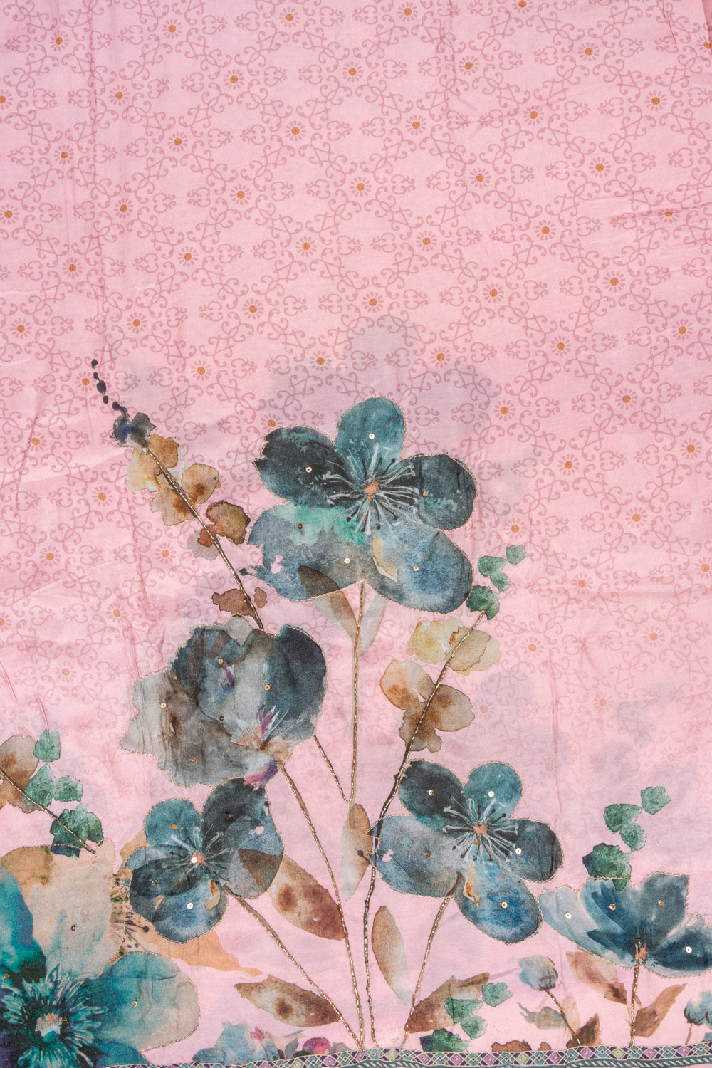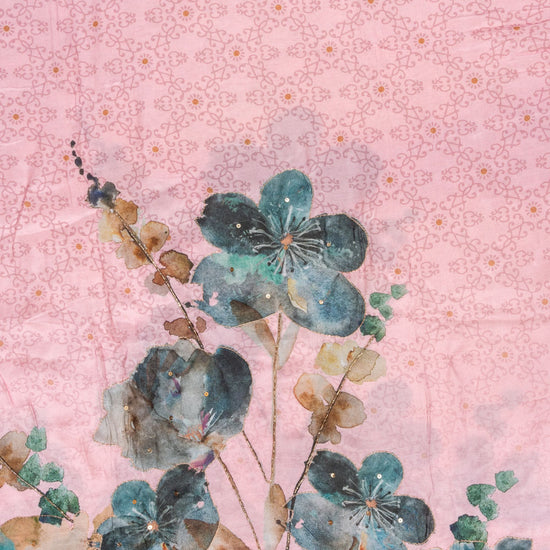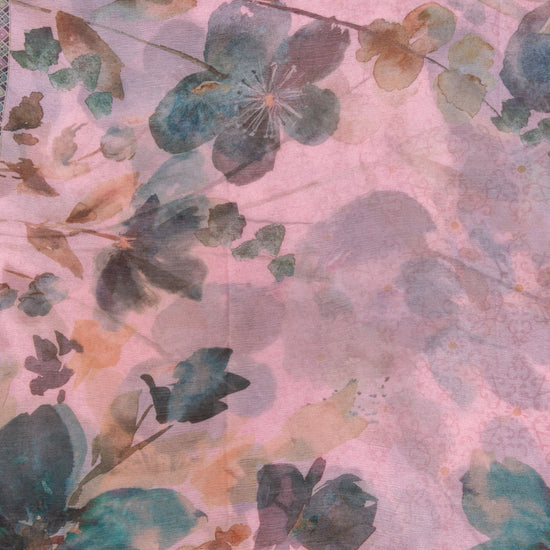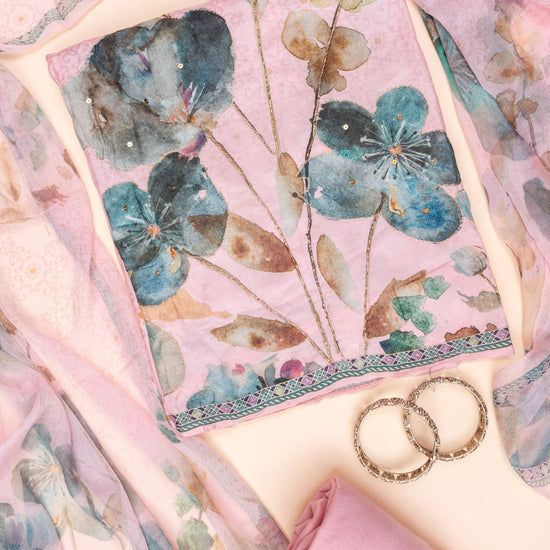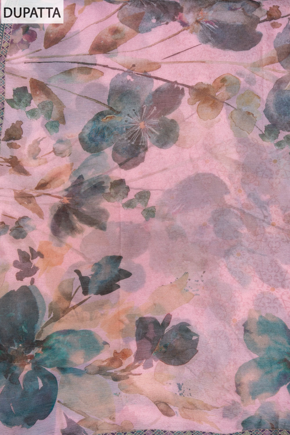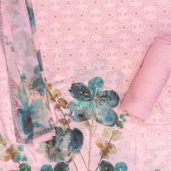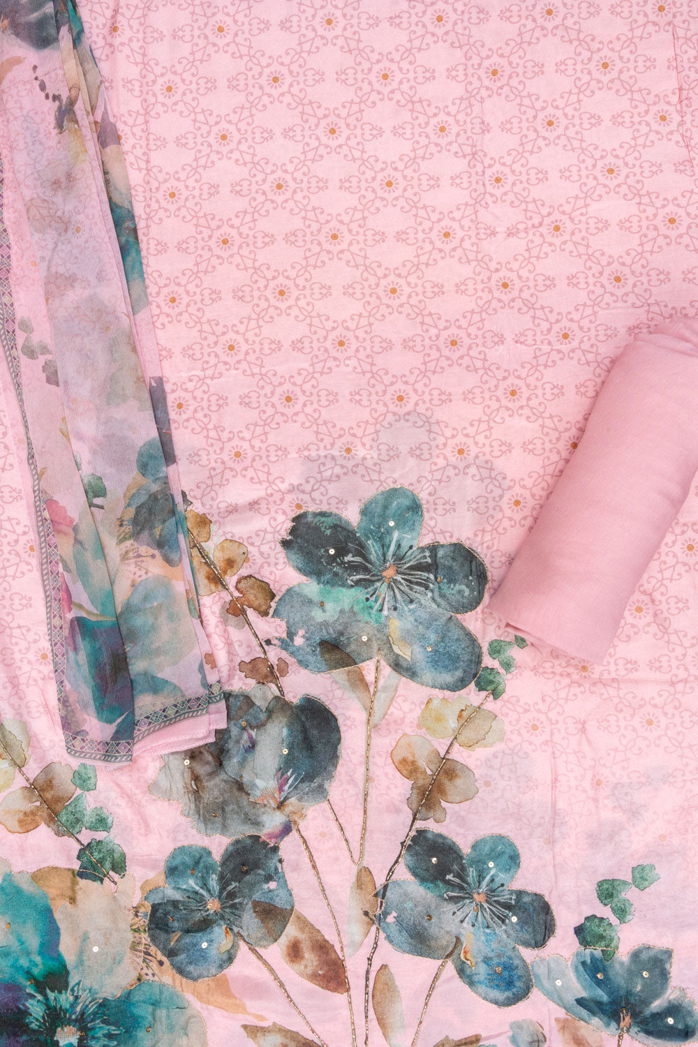Panna Pink Floral Printed Cotton Unstitched Salwar Suit With Chiffon Dupatta