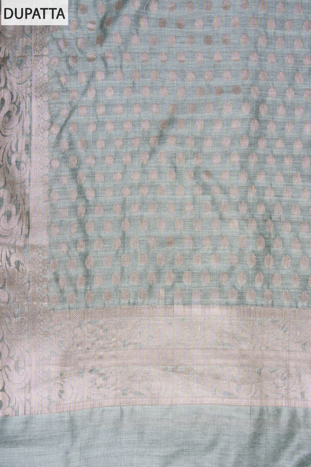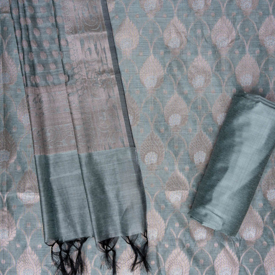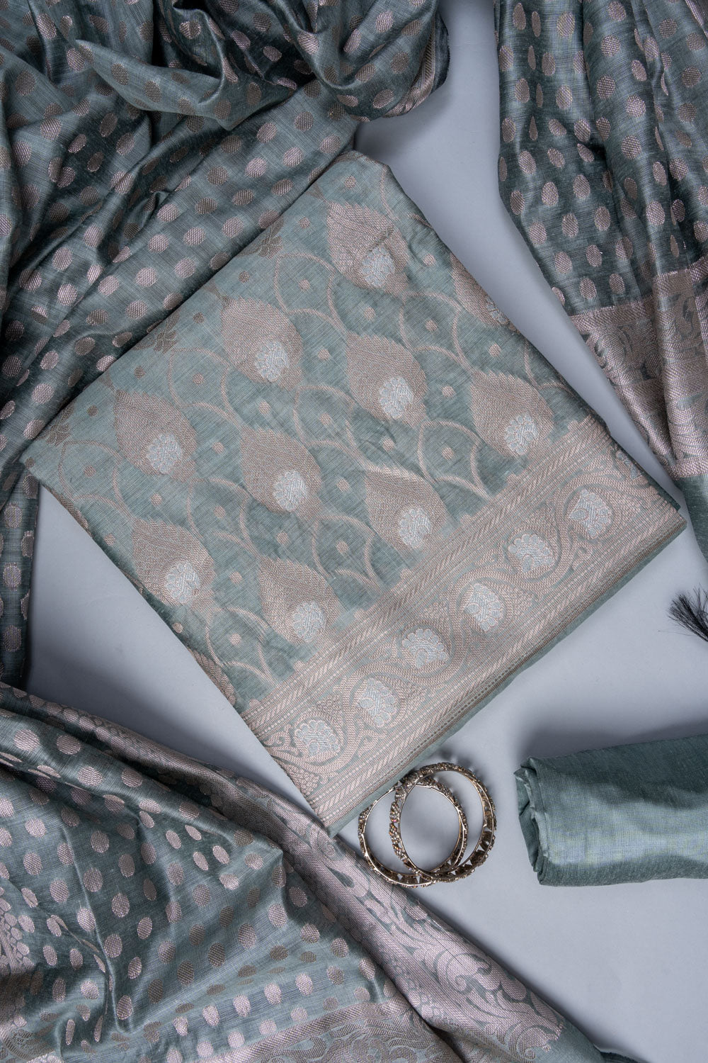 Panna Ash Grey Banarasi Woven Zari Cotton Unstitched Salwar Suit With Cotton Dupatta