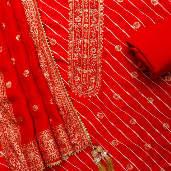 Panna Grace Redefined Red Cotton Unstitched Salwar Kameez With Cotton Dupatta