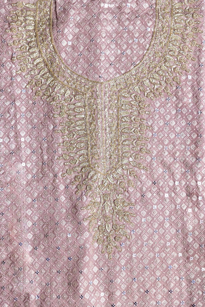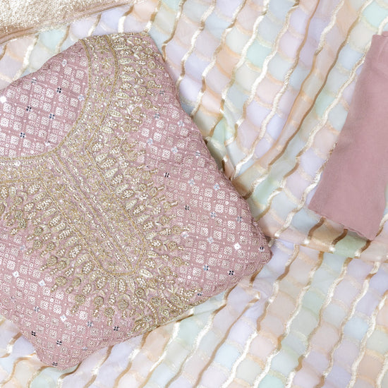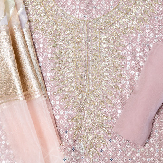 Panna Onion Georgette Unstitched Suit With Organza Dupatta