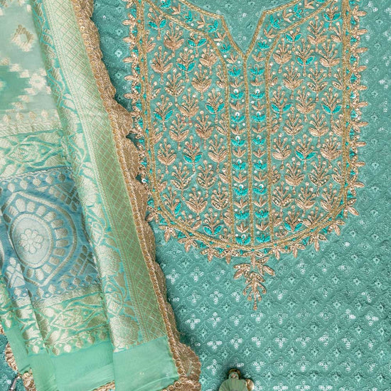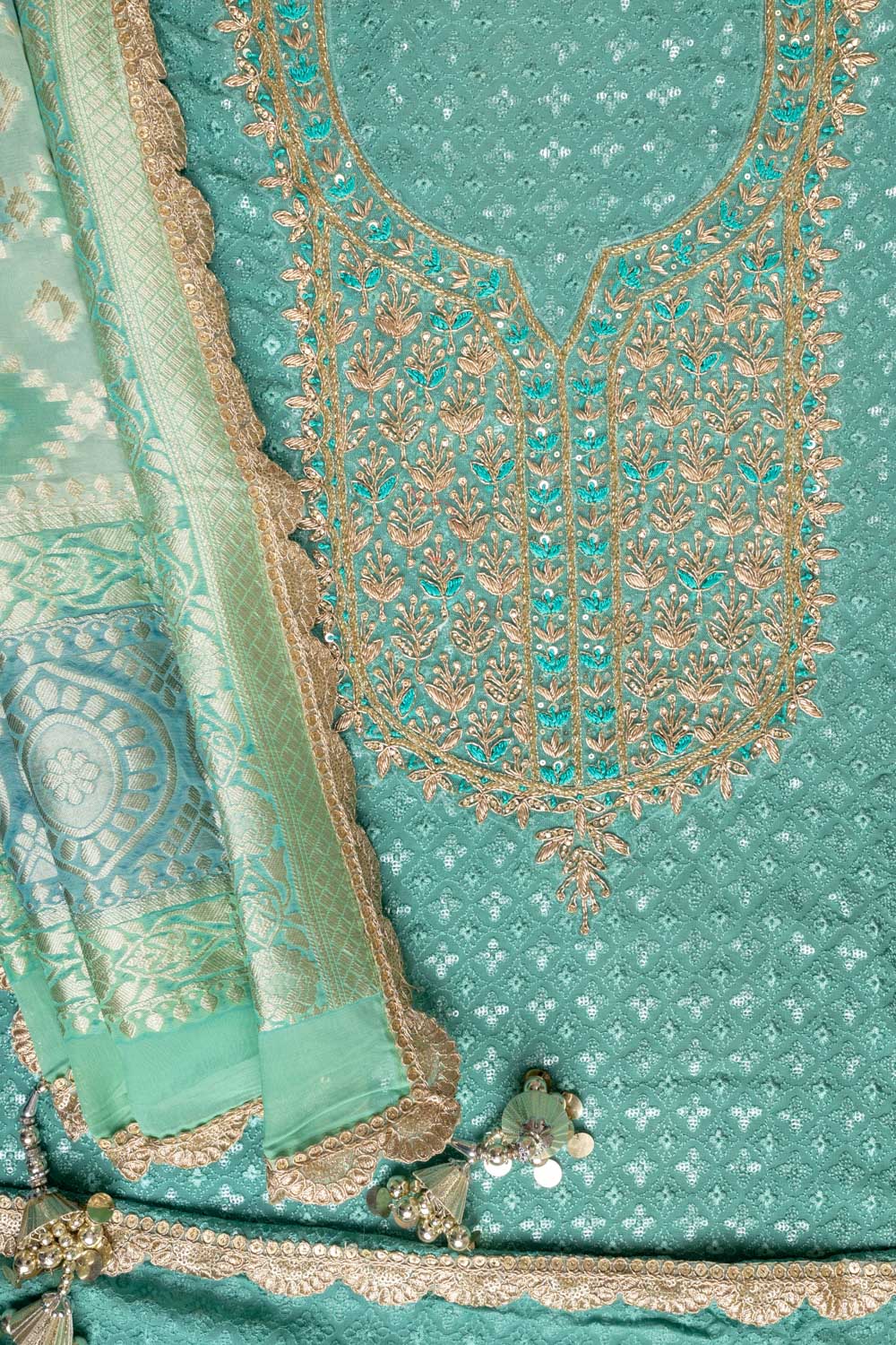 Mint Green Georgette Unstitched Suit With Organza Dupatta – The Panna Shop