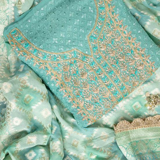 Mint Green Georgette Unstitched Suit With Organza Dupatta