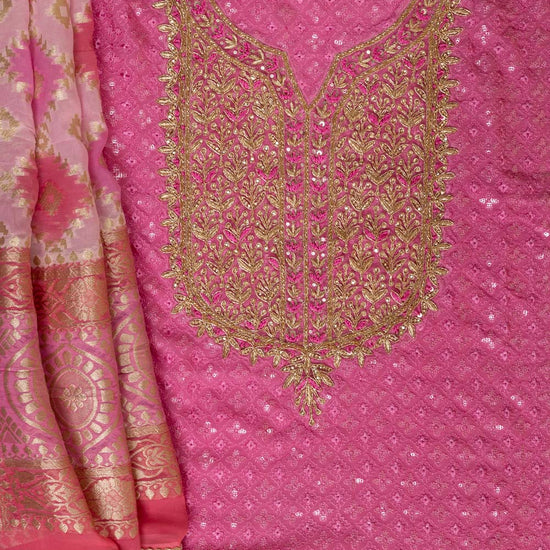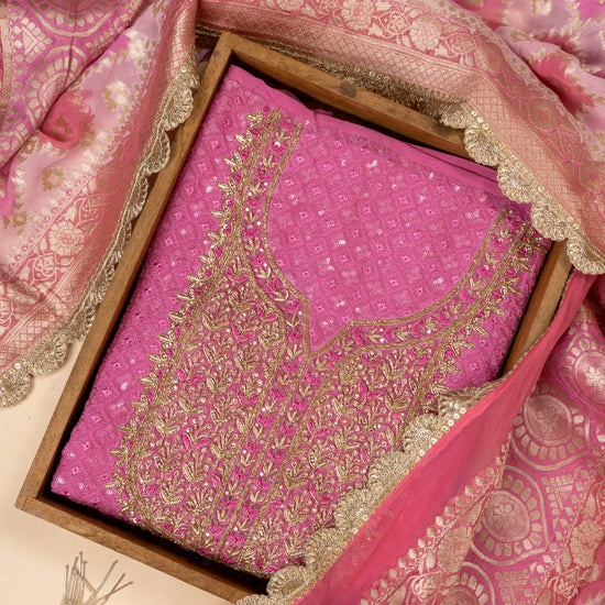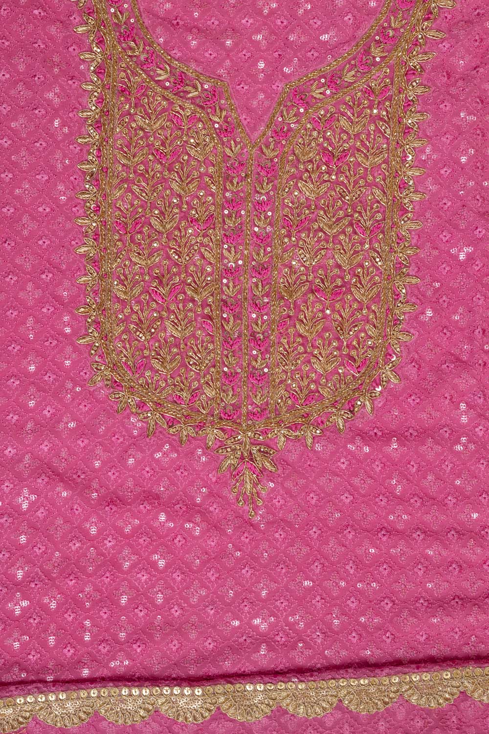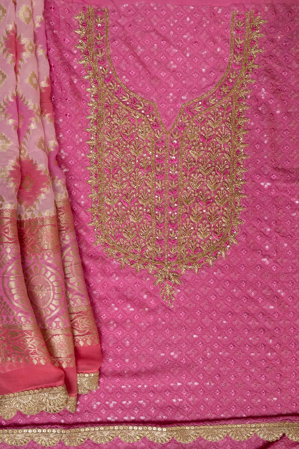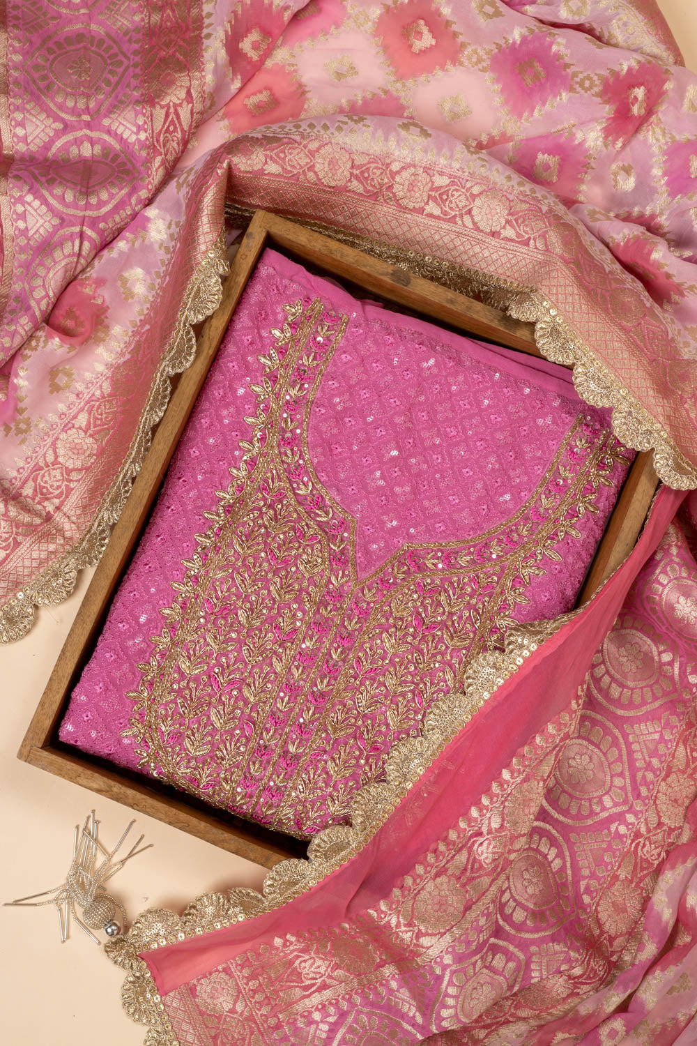 Panna Pink Georgette Unstitched Suit With Organza Dupatta