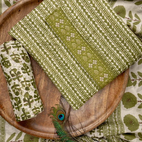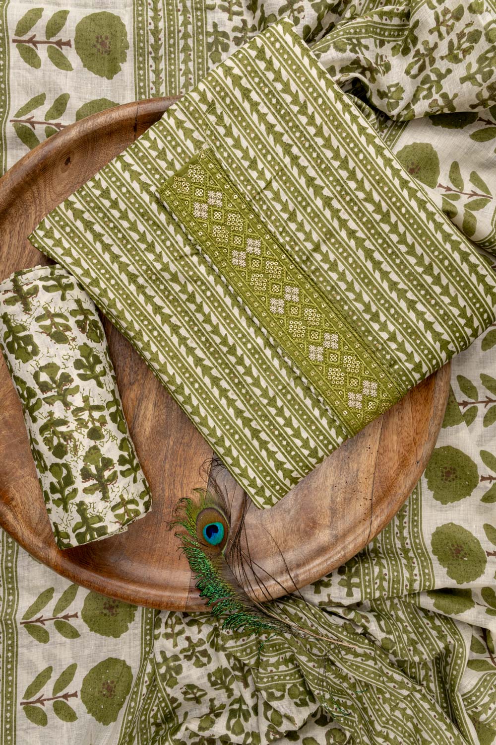 Panna Pista Digital Printed Cotton Unstitched Suit With Dupatta