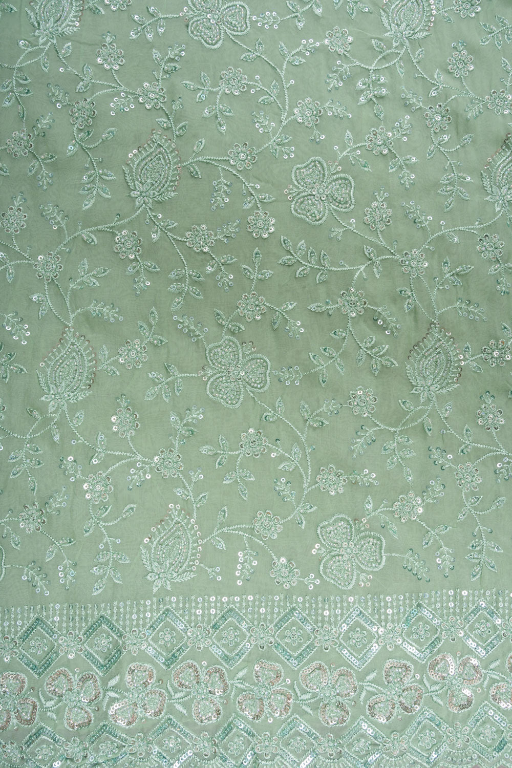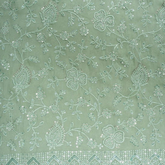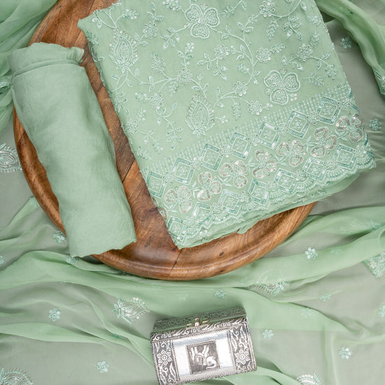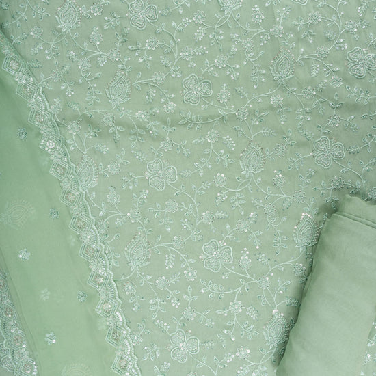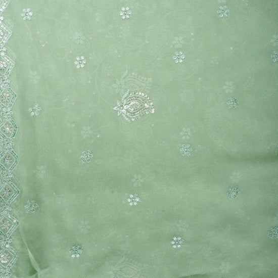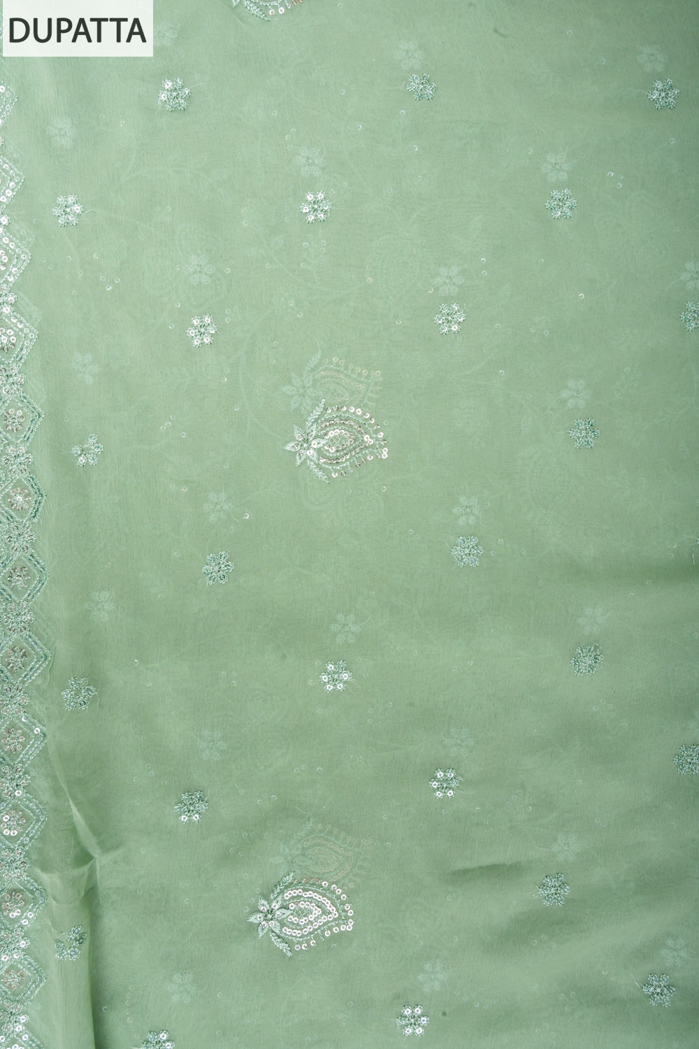 Panna Green Organza Unstitched Suit With Chiffon Dupatta