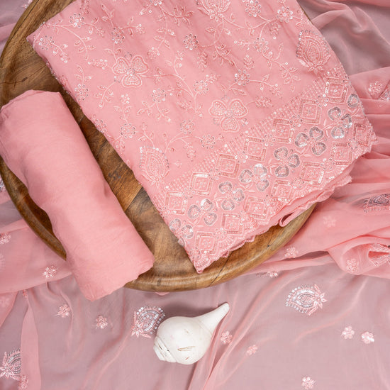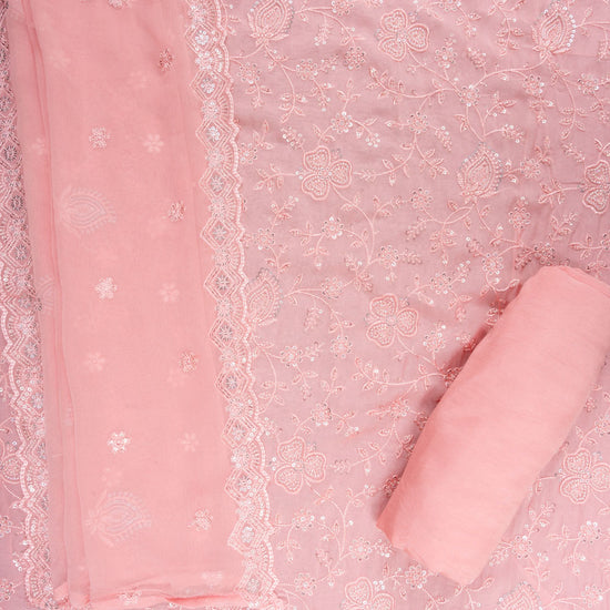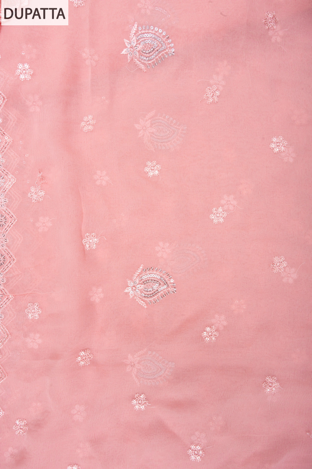 Panna Pink Organza Unstitched Suit With Chiffon Dupatta