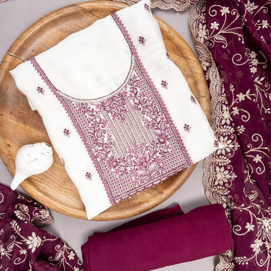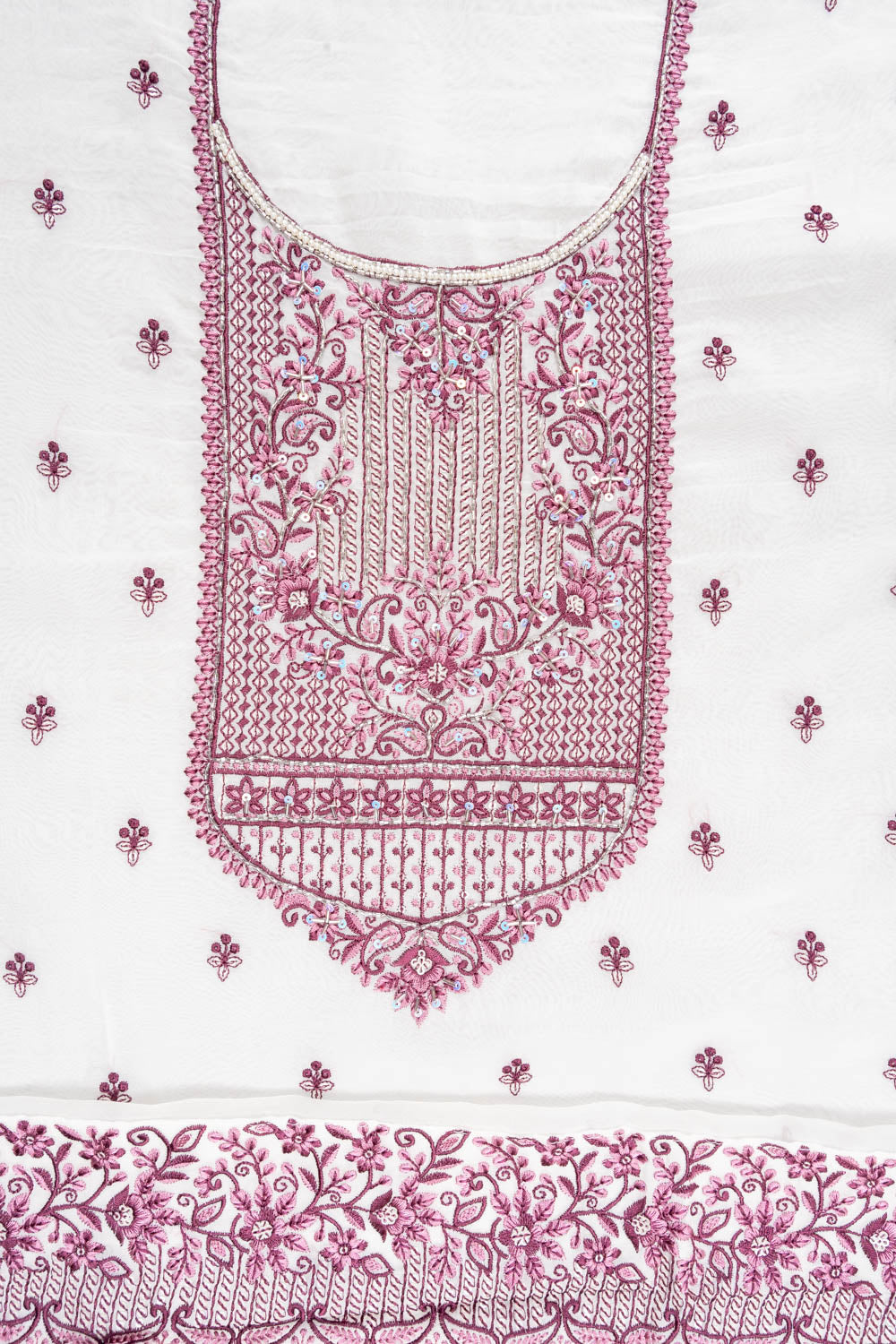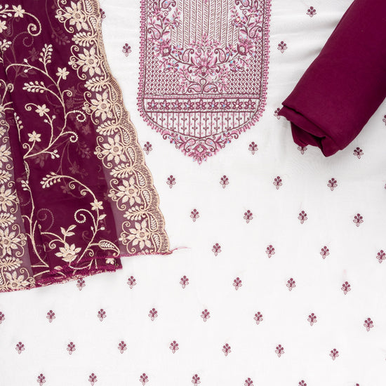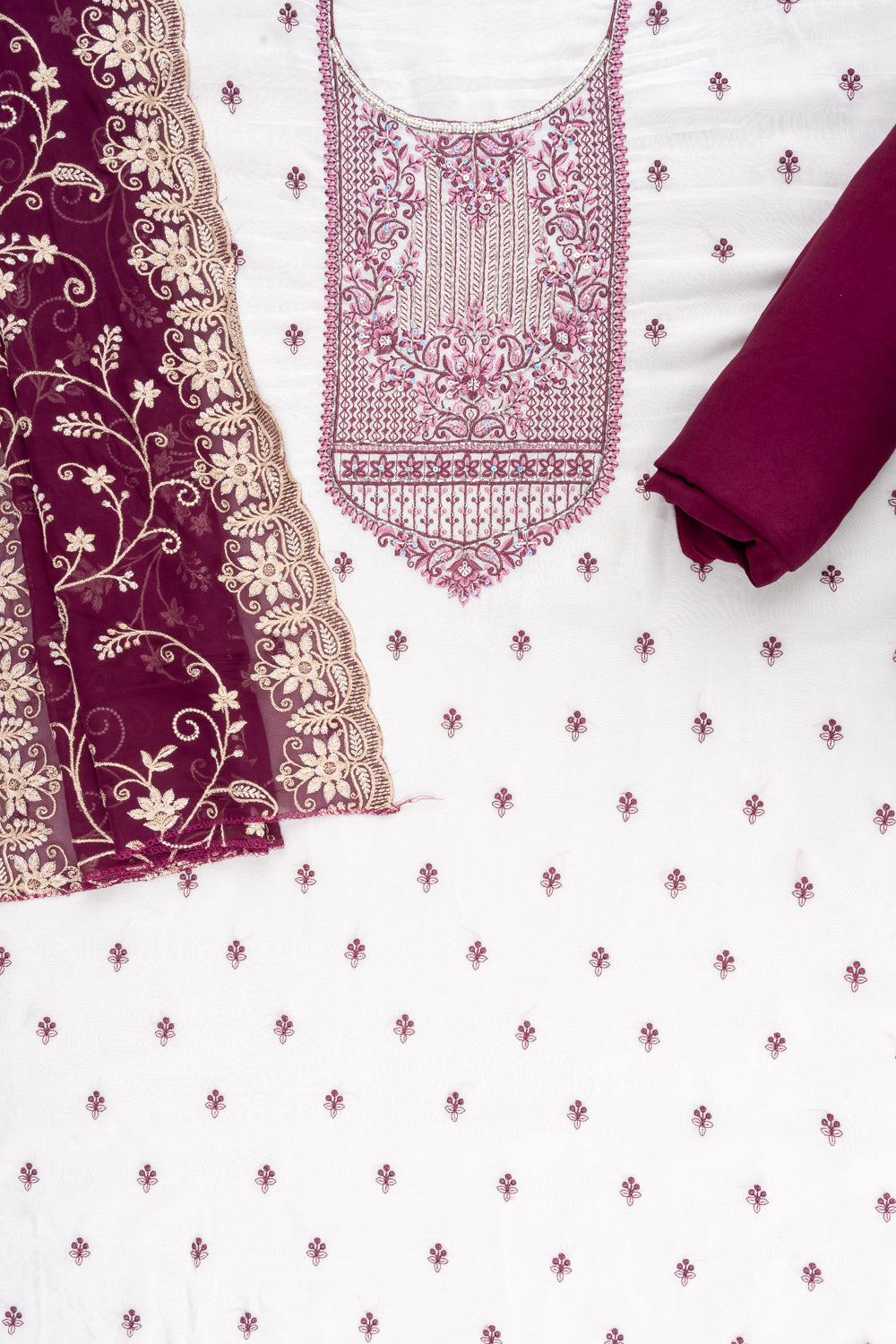 Panna Garnet Off White Organza Embroidered Unstitched Suit With Dupatta