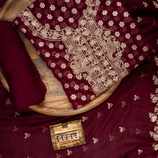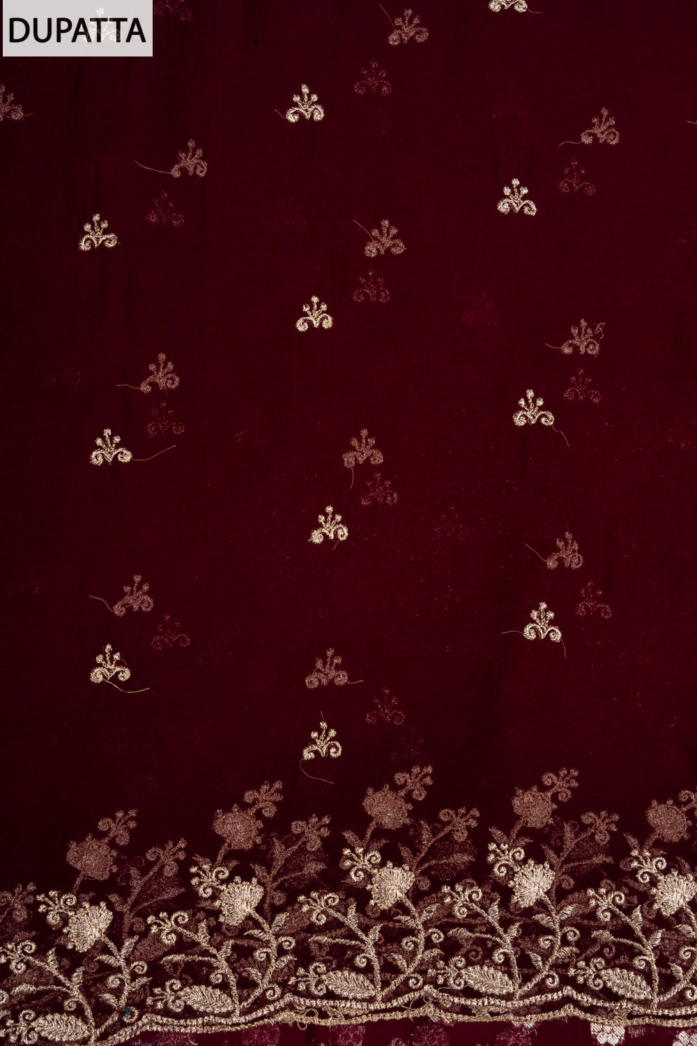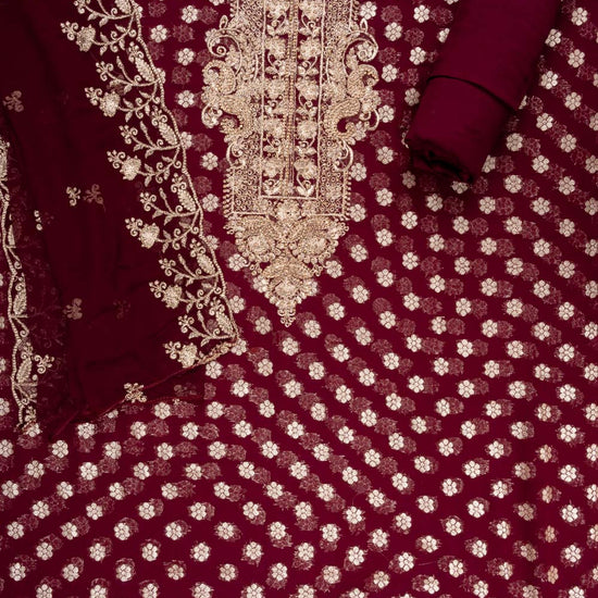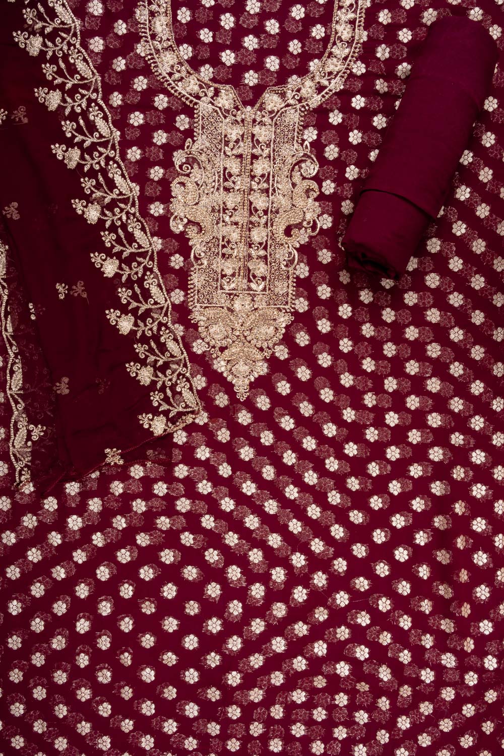 Panna Garnet Georgette Unstitched Suit With Chiffon Dupatta