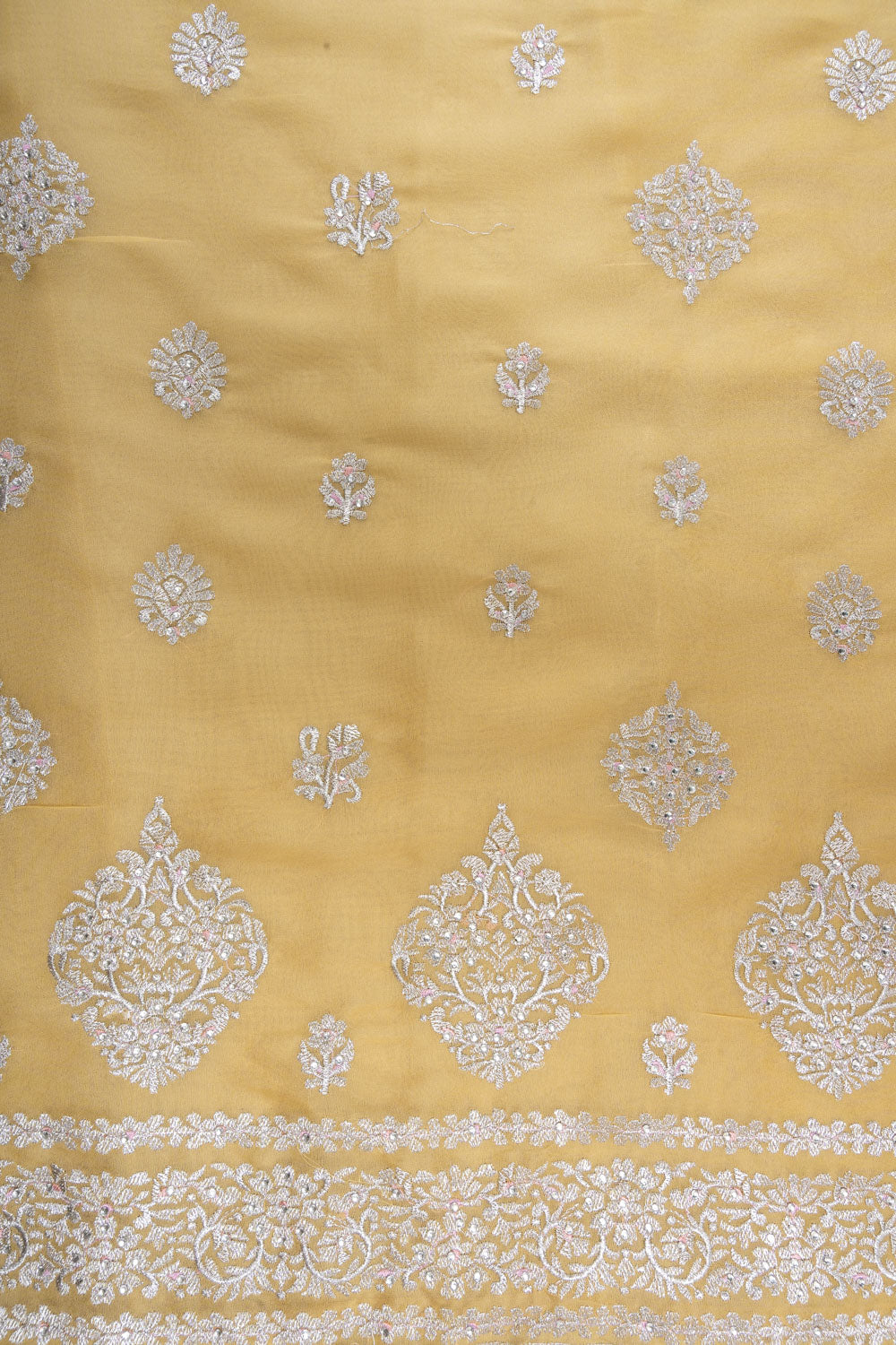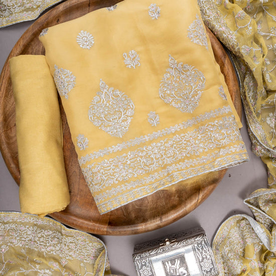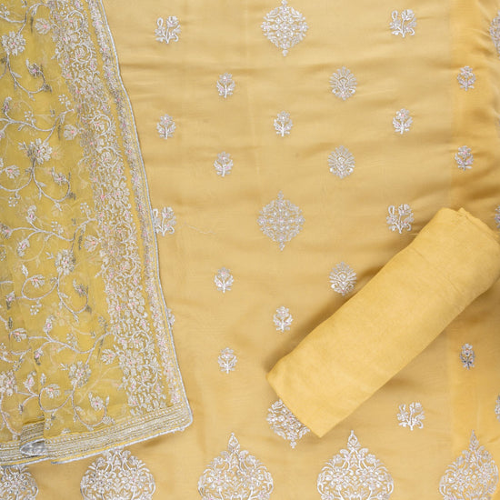 Panna Mango Gold Georgette Unstitched Suit With Organza Dupatta