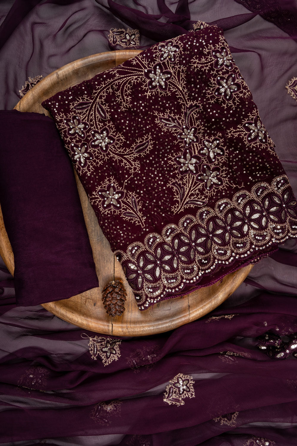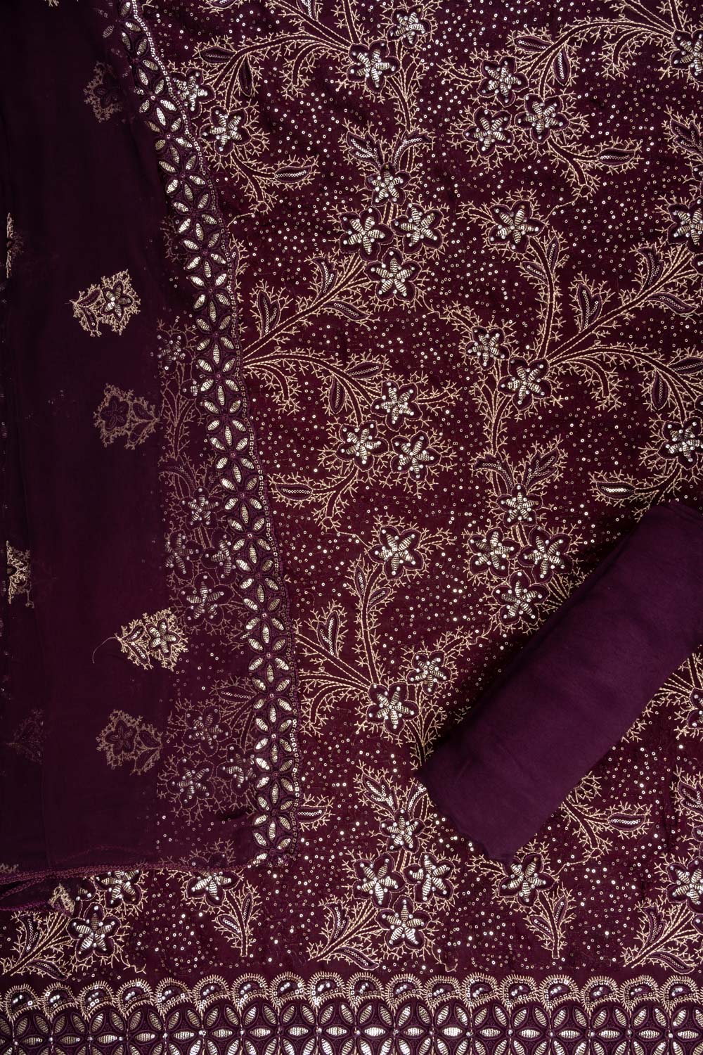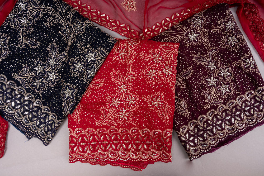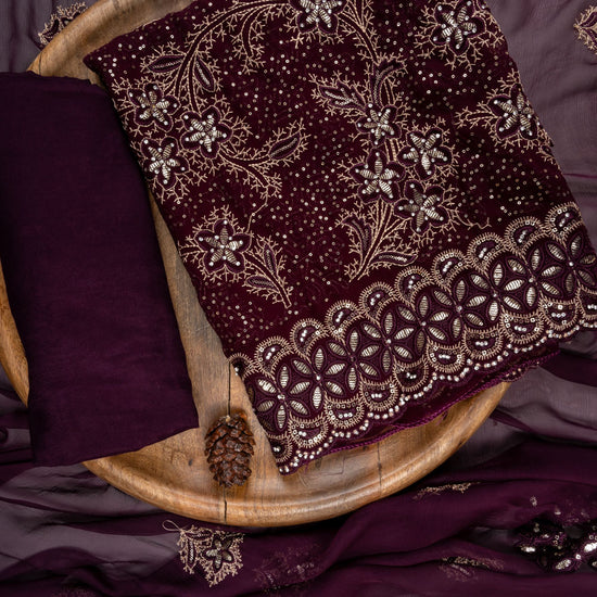 Panna Garnet Georgette Unstitched Suit With Chiffon Dupatta