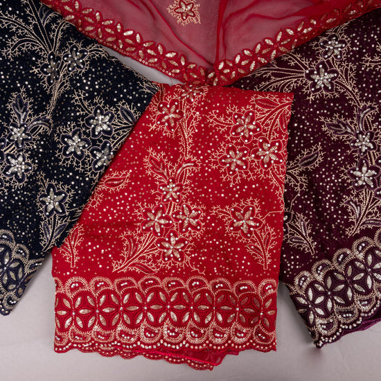Craft your unique taste with our versatile collection of unstitched suits. Our quintessential party wear suits are an elegant combination of comfort and glamor. Find your perfect fit for all the ethnic parties from endless choices of fabrics, patterns, prints & intricacies.