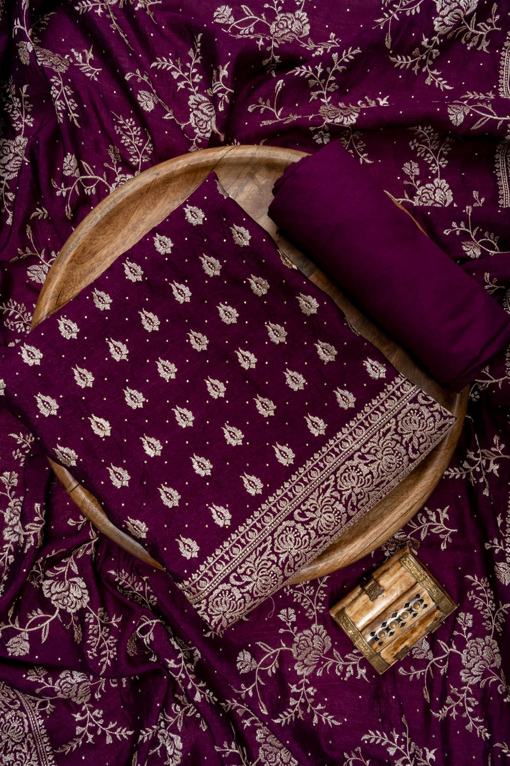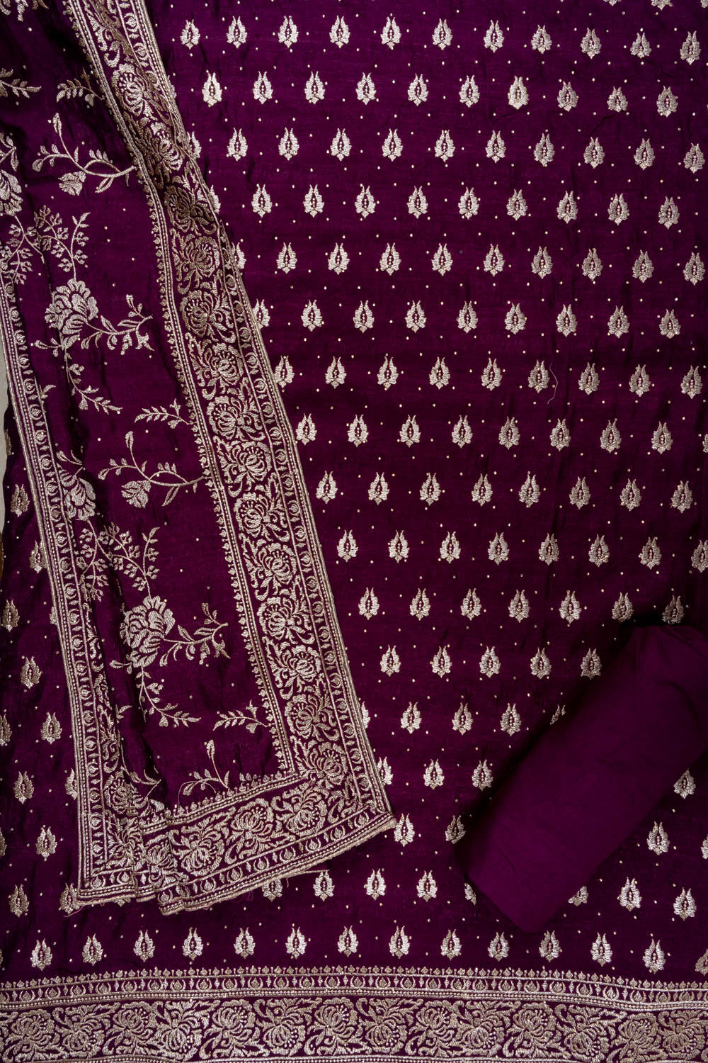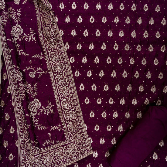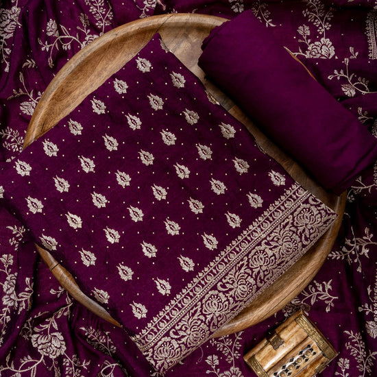 Panna Garnet Swarovski & Zari Threadwork Cotton Unstitched Salwar Suit With Cotton Dupatta