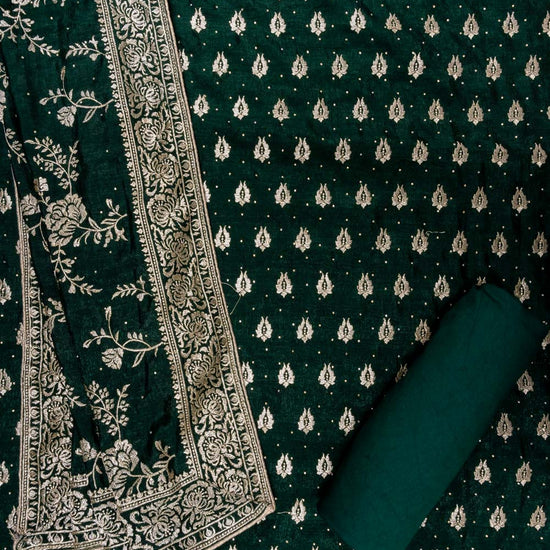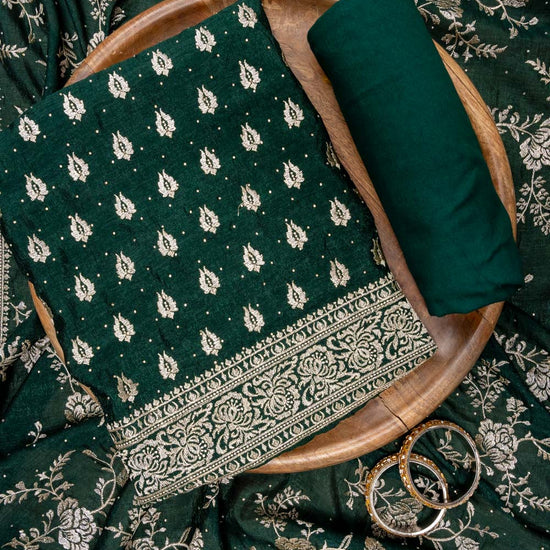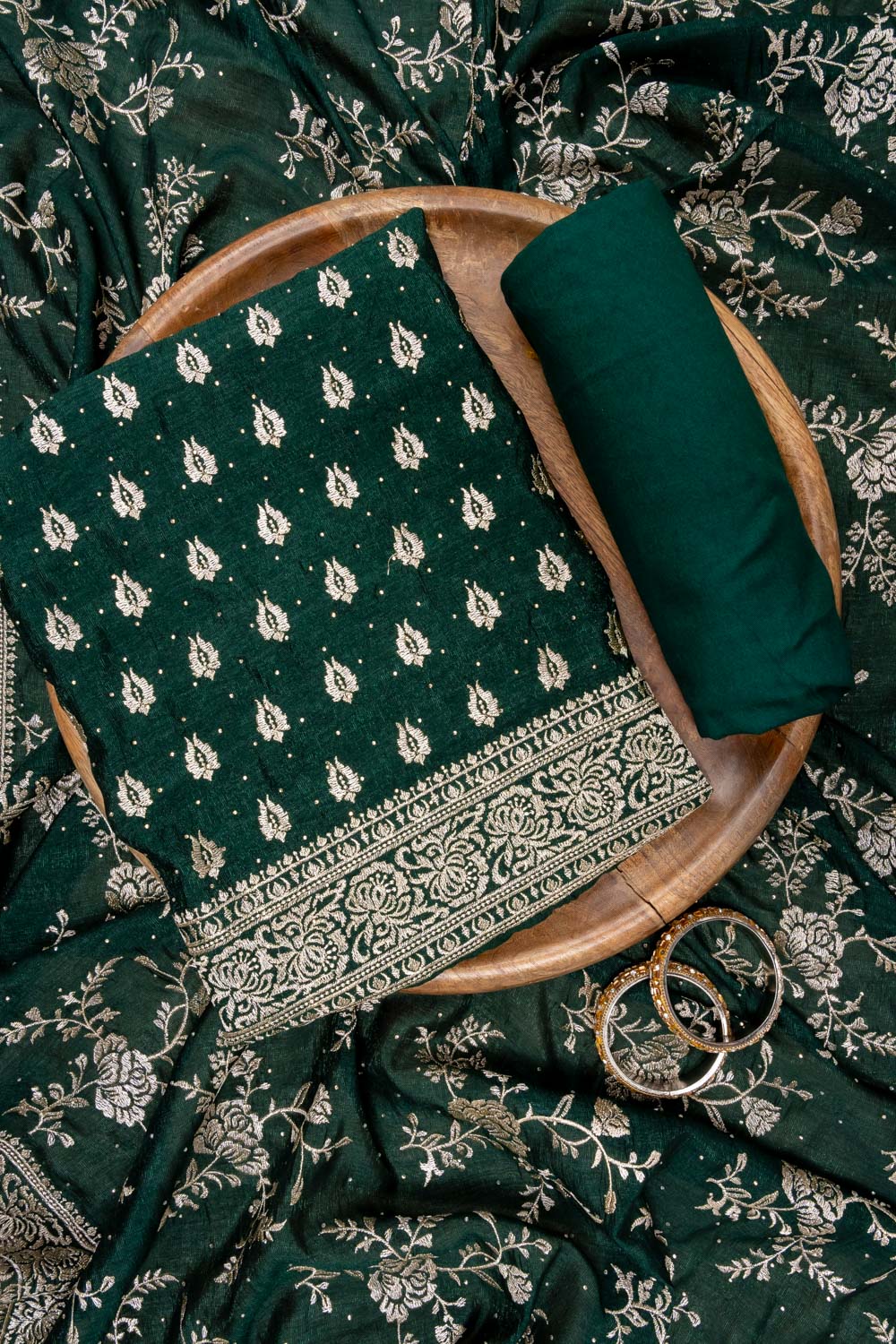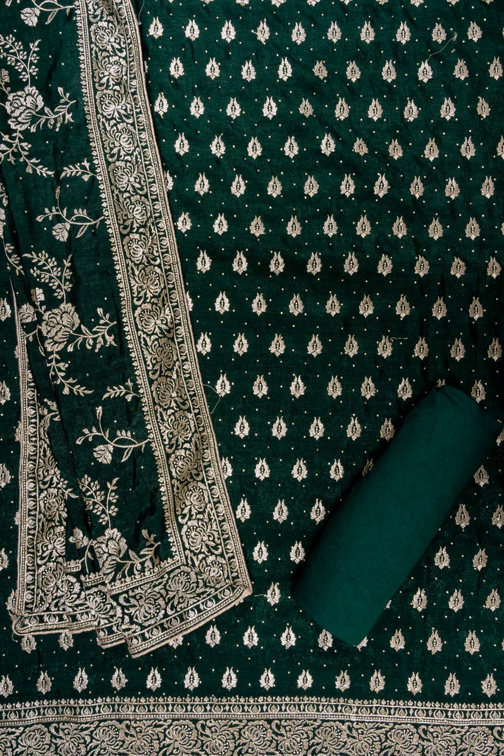 Green Swarovski & Zari Threadwork Cotton Unstitched Salwar Suit With C – The Panna Shop