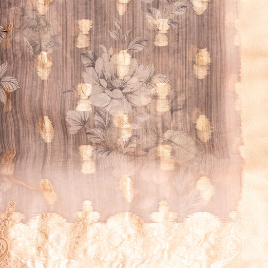Tussar Organza Embroidered Unstitched Suit With Dupatta