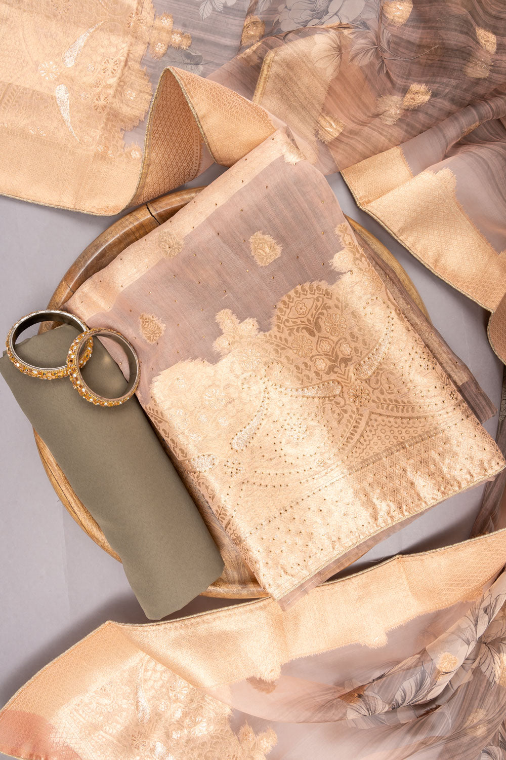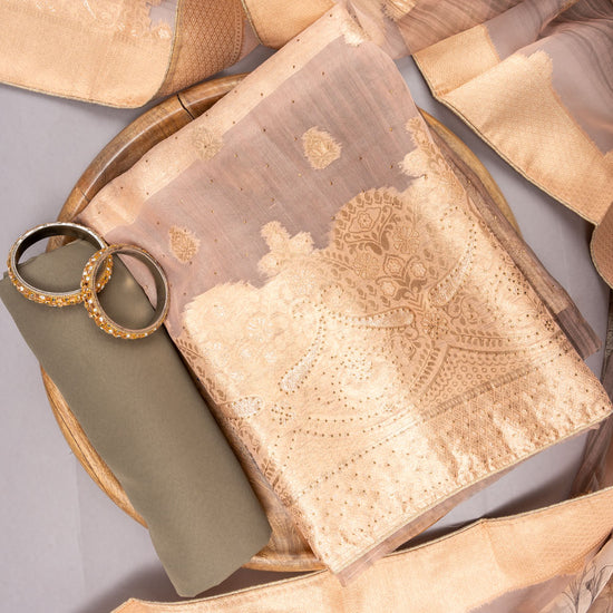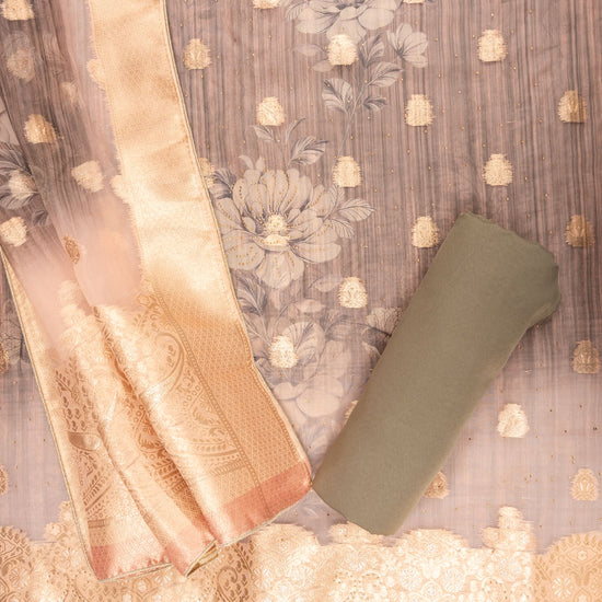 Tussar Organza Embroidered Unstitched Suit With Dupatta – The Panna Shop