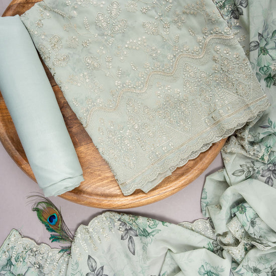 Panna Mint Green Georgette Embroidered Unstitched Suit With Dupatta