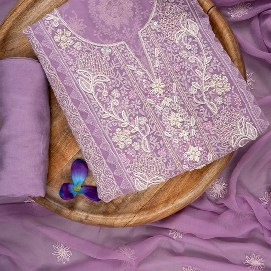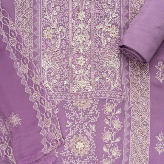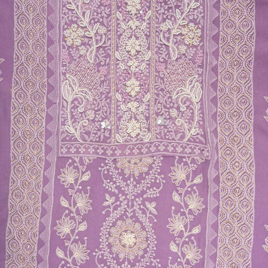 Panna Mauve Georgette Unstitched Suit With Chiffon Dupatta