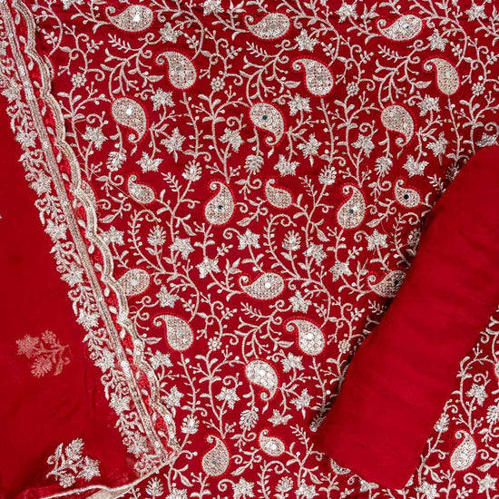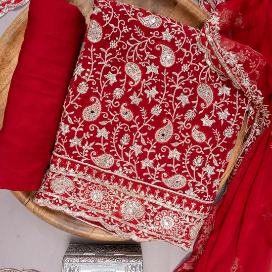 Panna Maroon Organza Unstitched Suit With Chiffon Dupatta