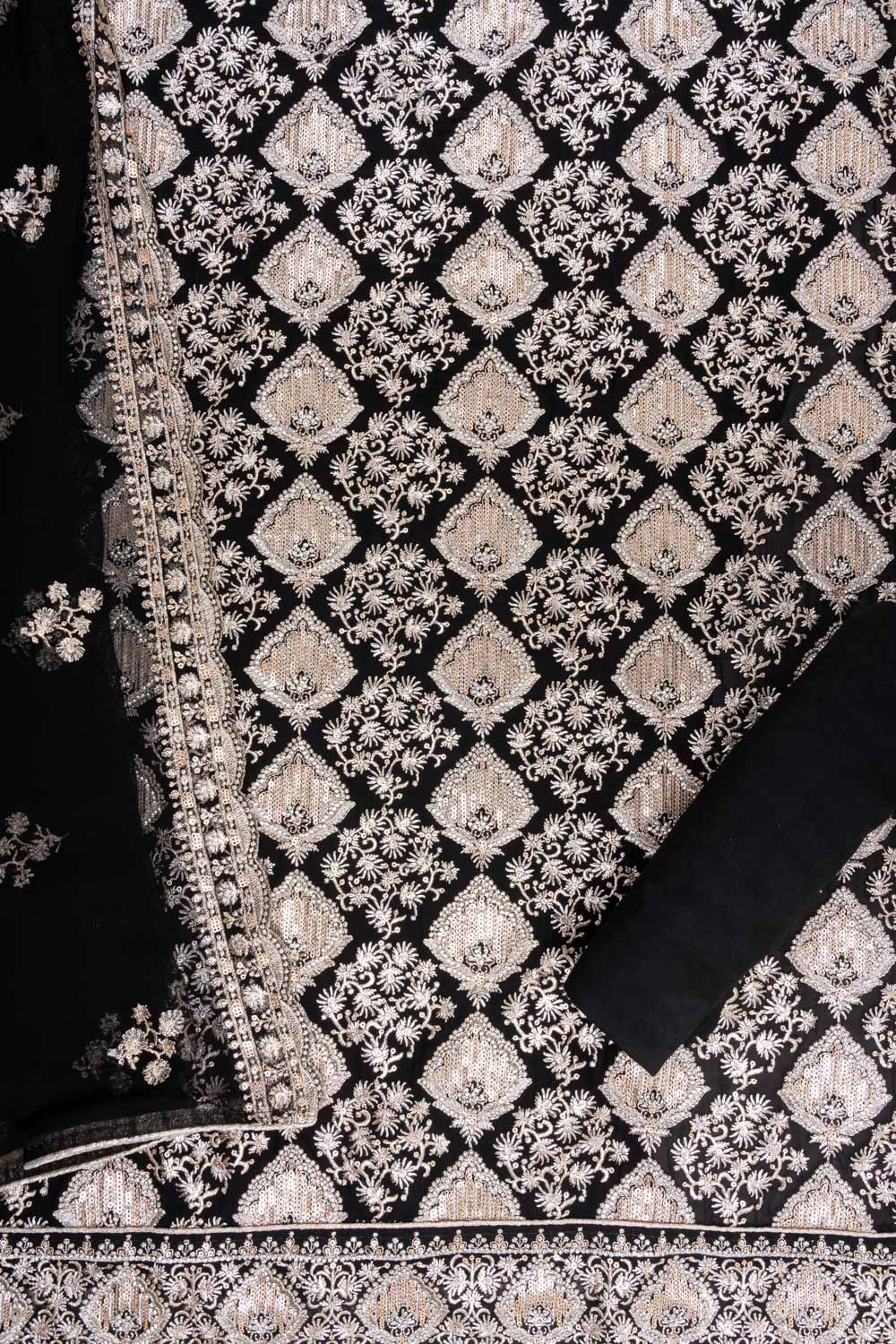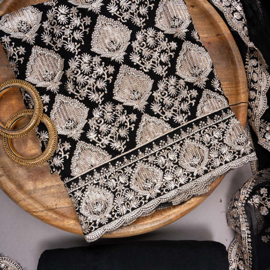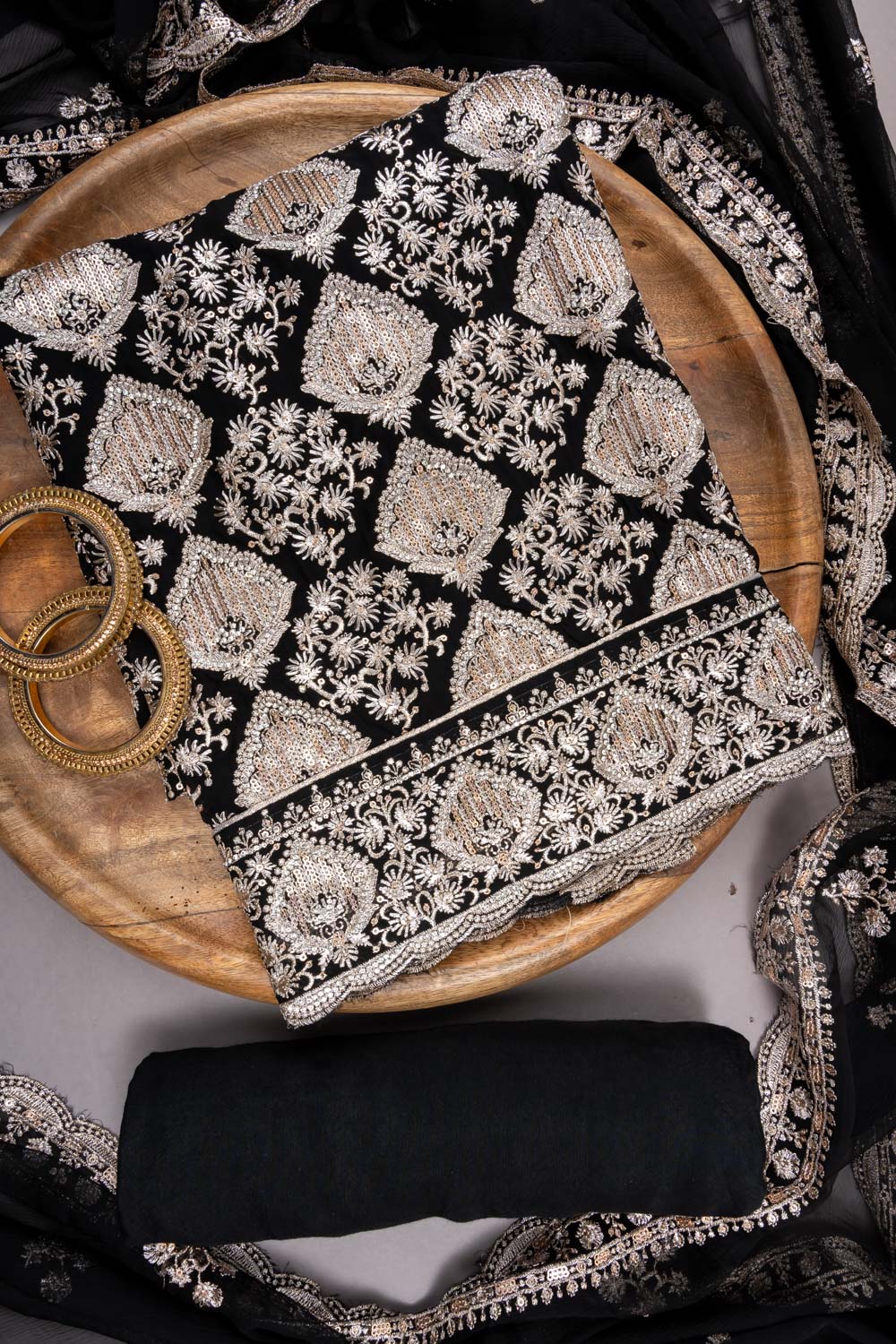 Panna Black Organza Unstitched Suit With Chiffon Dupatta