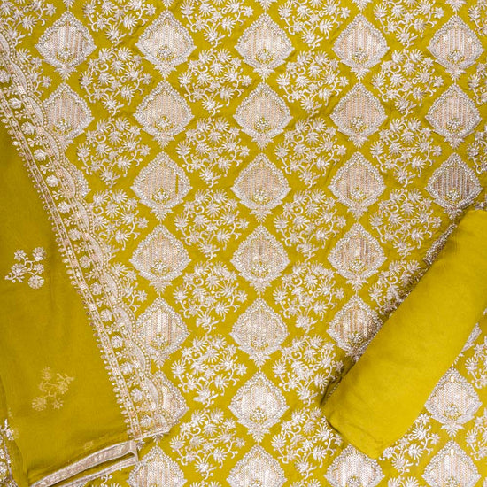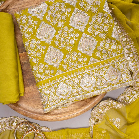 Panna Parrot Organza Unstitched Suit With Chiffon Dupatta