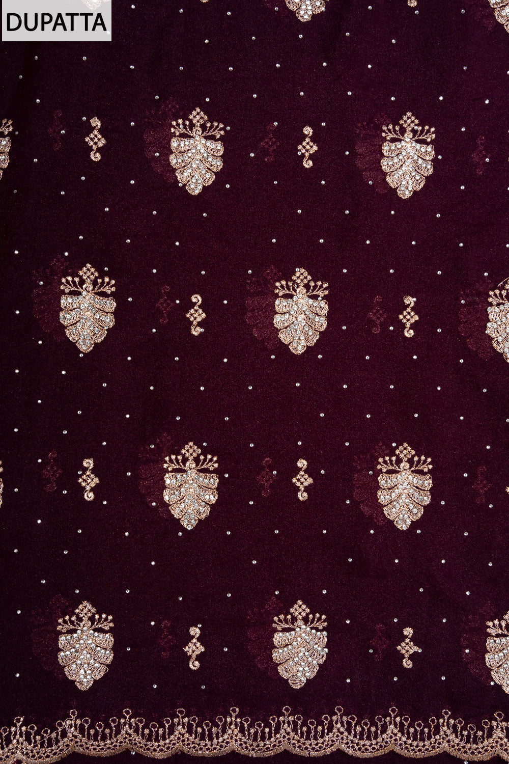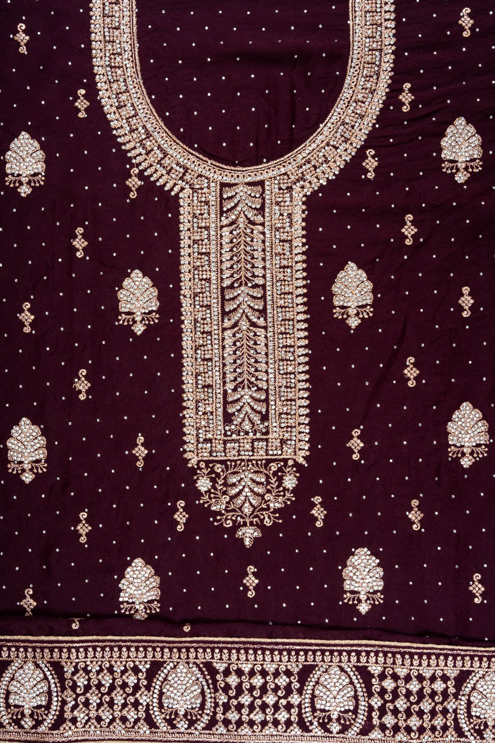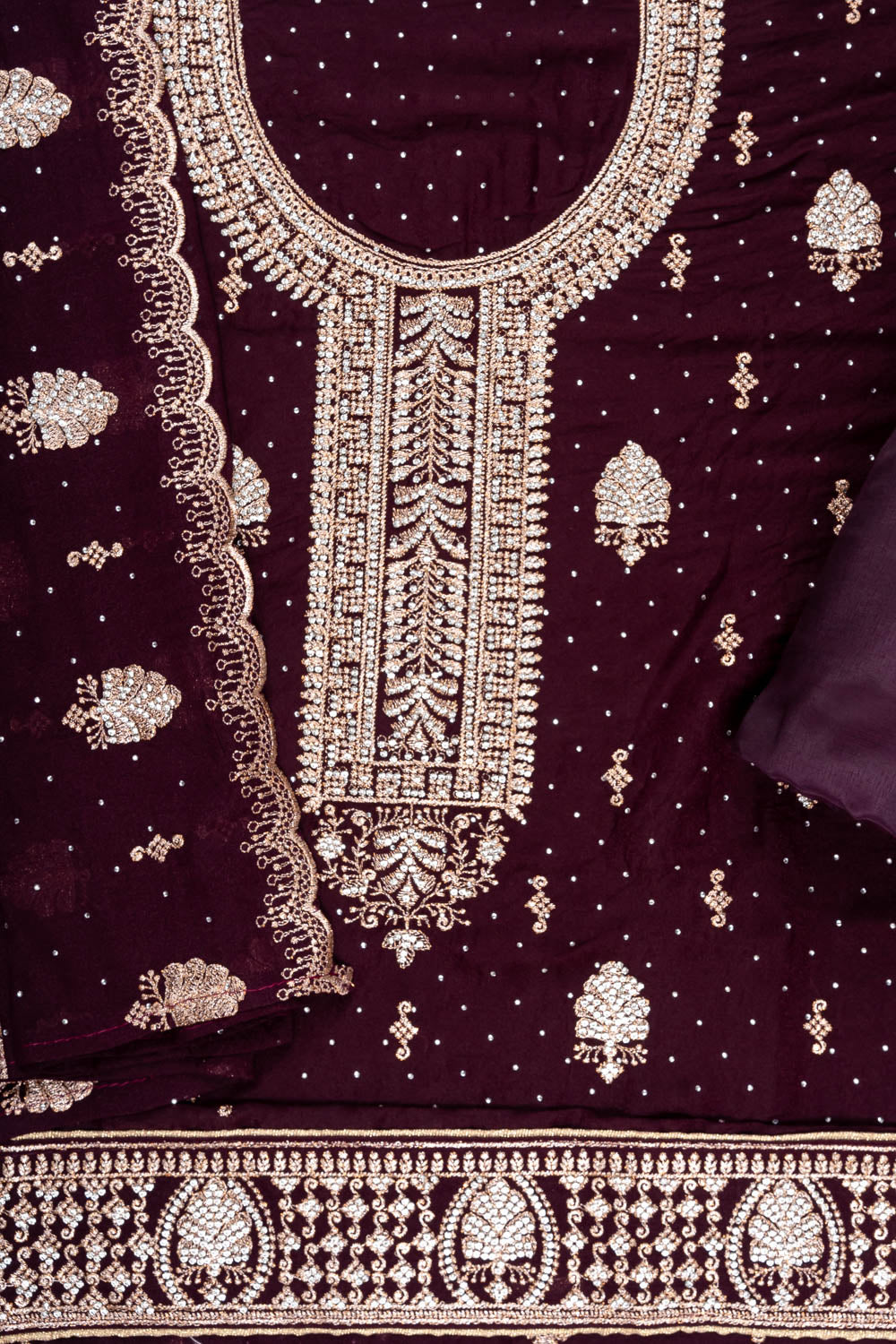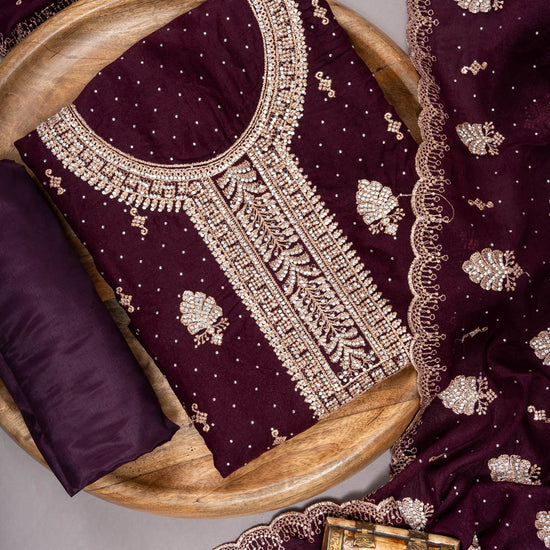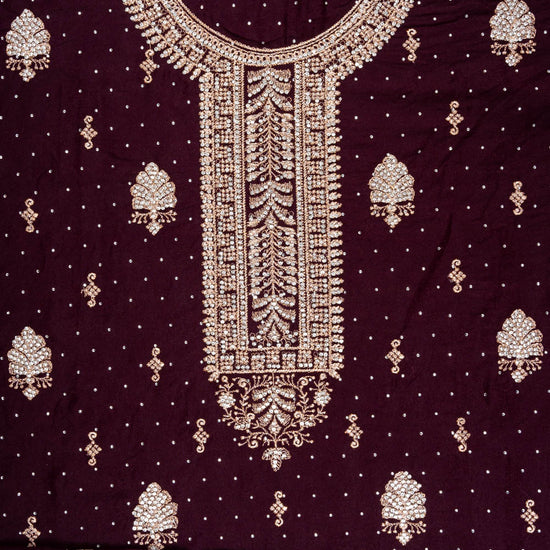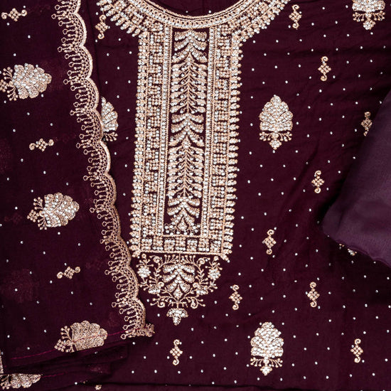 Panna Garnet Georgette Unstitched Suit And Dupatta With Swarovski Work