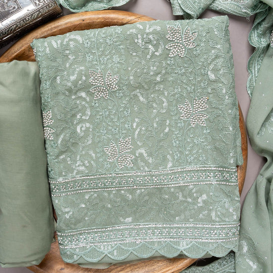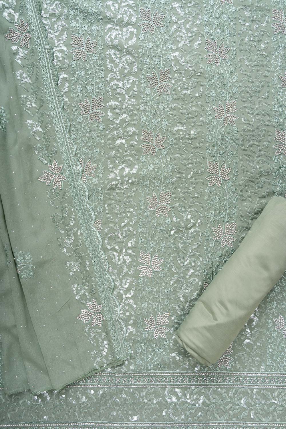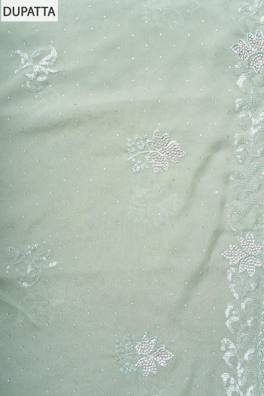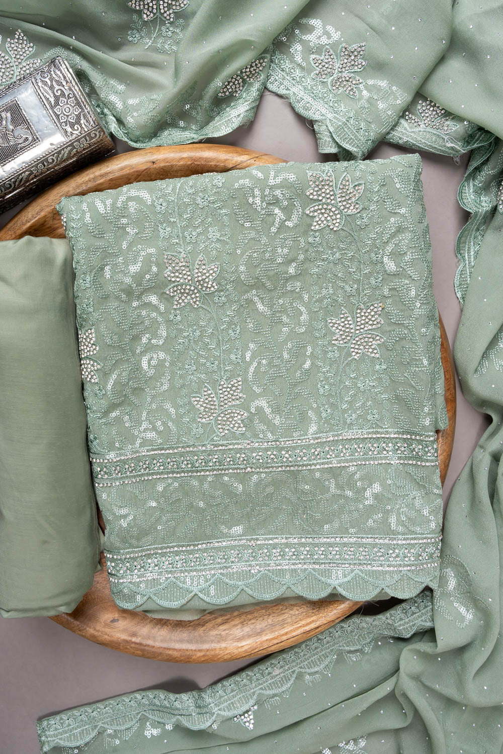 Panna Mint Green Georgette Unstitched Suit With Chiffon Dupatta