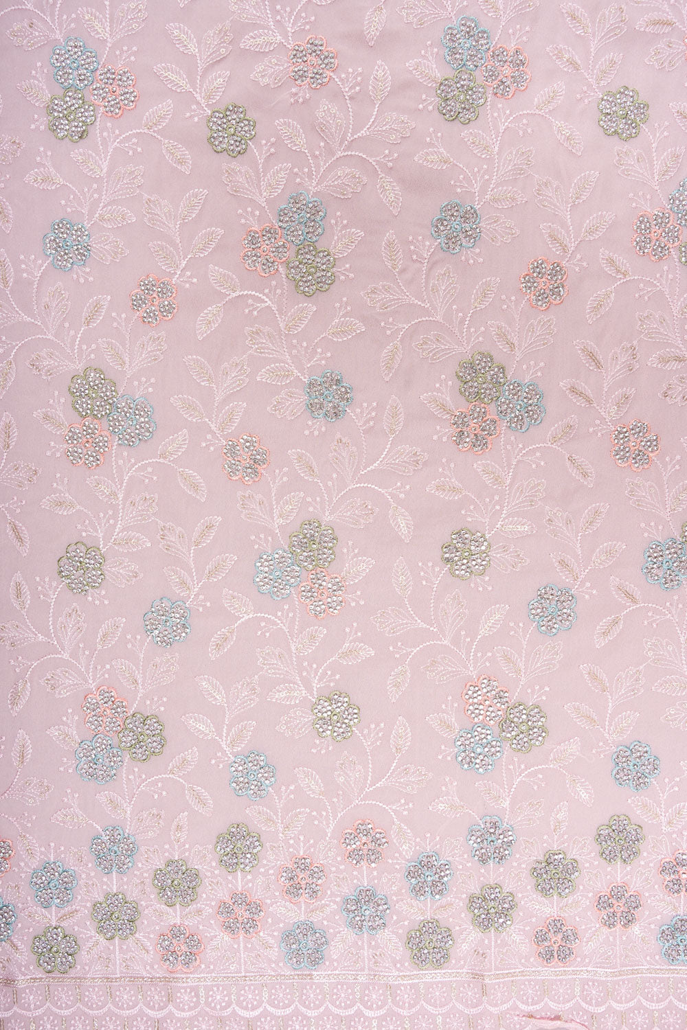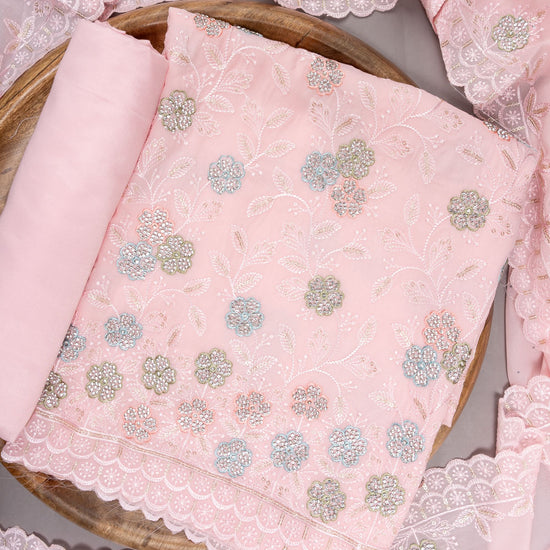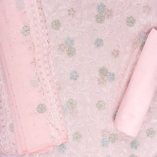 Panna Pink Georgette Unstitched Suit With Chiffon Dupatta