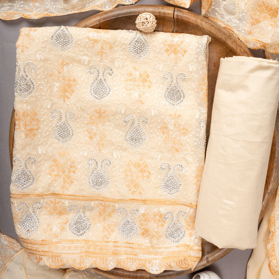 Get ready to radiate by adorning this classy trendy yet elegant unstitched suit. These suits are made in the finest & comfiest fabric and embellished with intricate embroidery and thread work. Perfect pick for every special occasion.