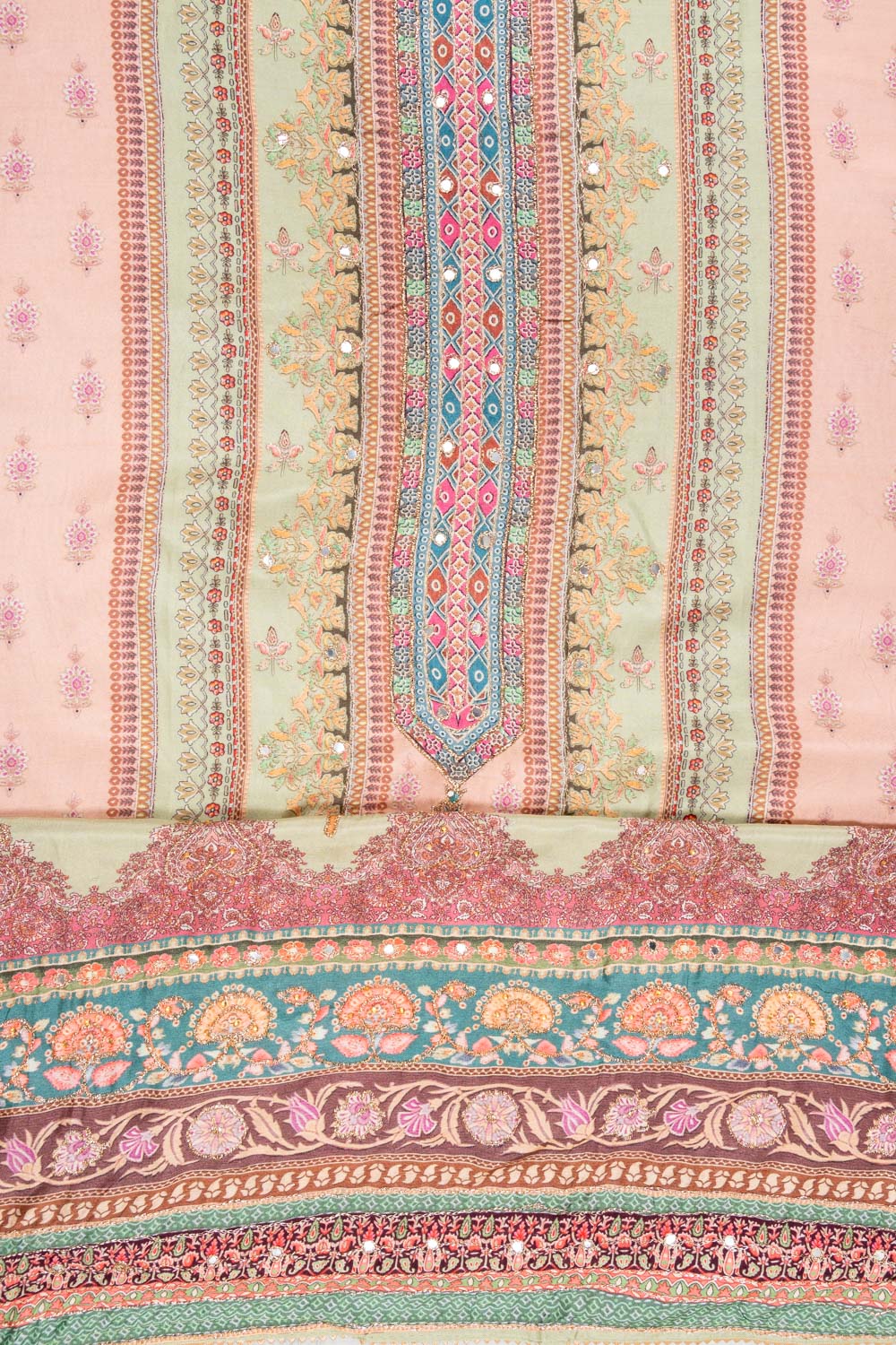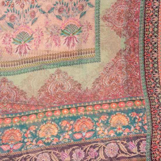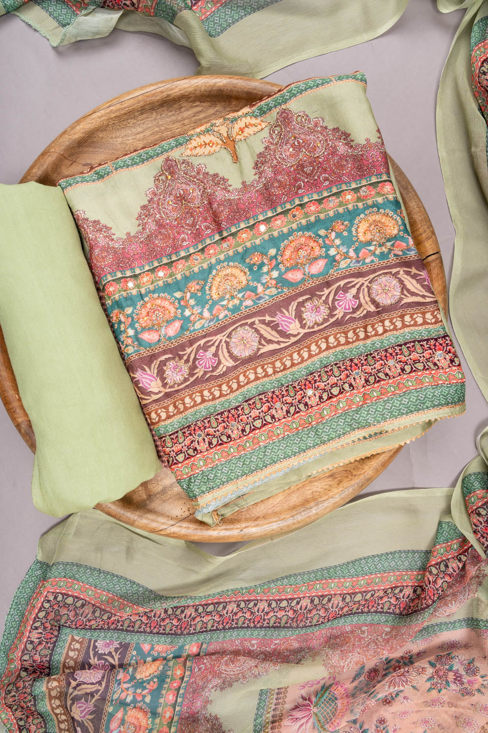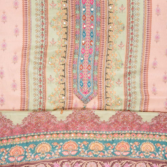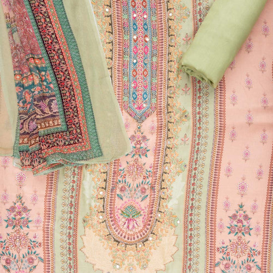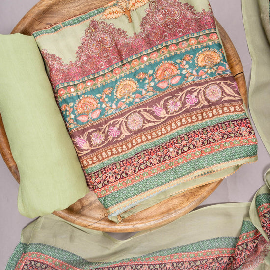 Panna Pista Crepe Unstitched Suit With Chiffon Dupatta