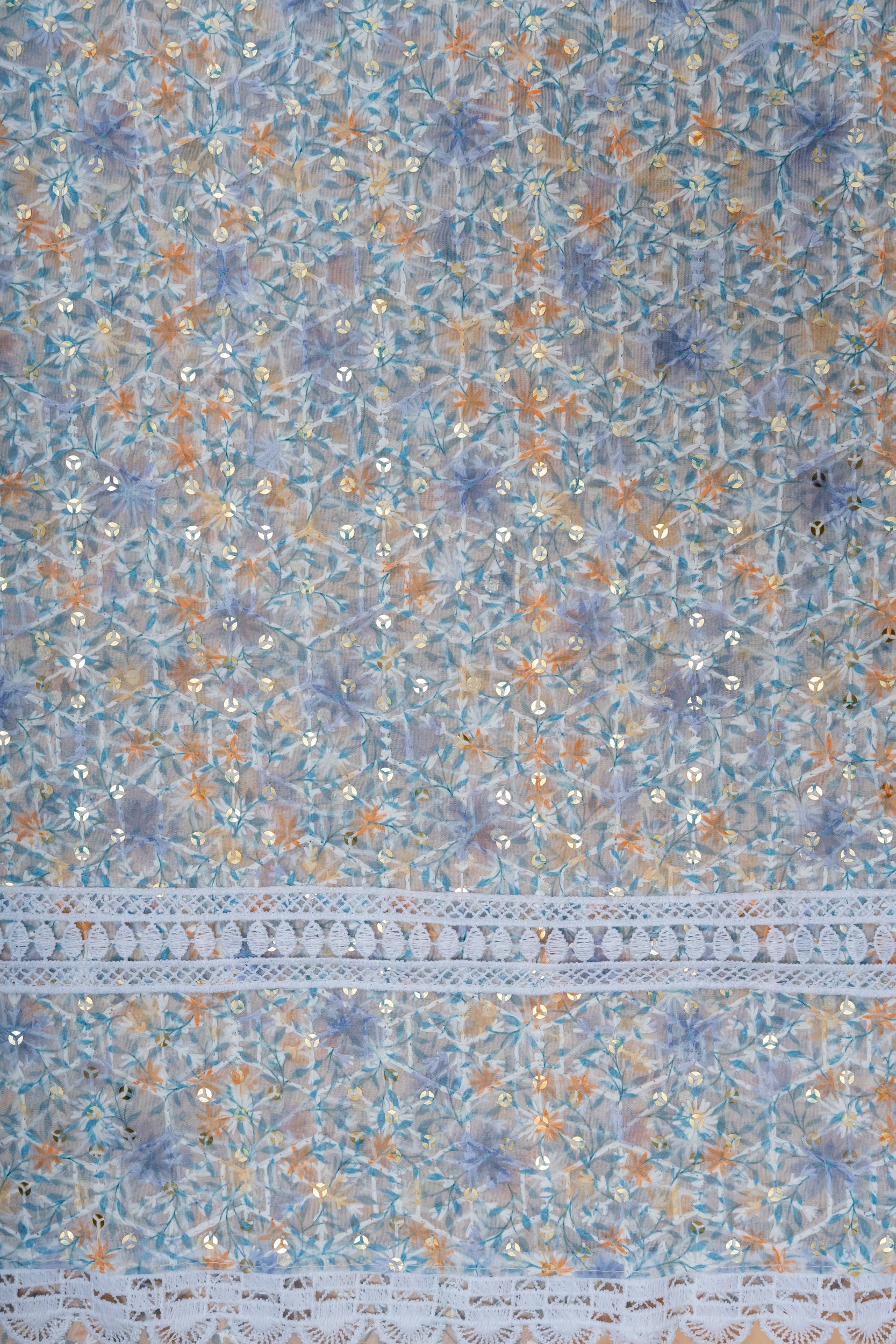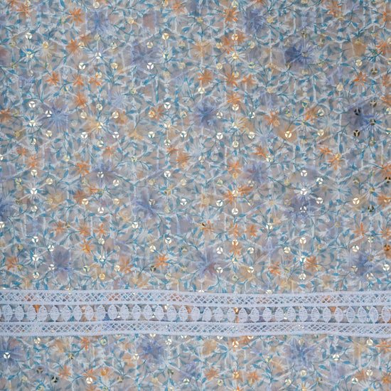 Mauve Sequence, Zari Threadwork & Digital Printed Cotton Unstitched Salwar Suit With Organza Dupatta