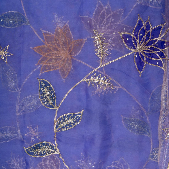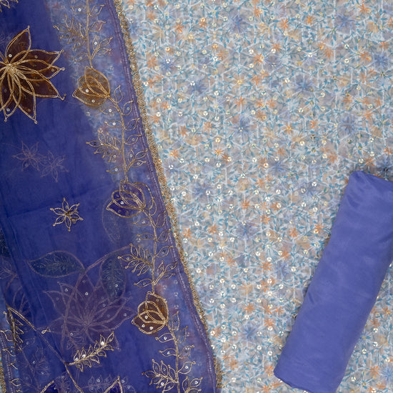 Panna Mauve Sequence, Zari Threadwork & Digital Printed Cotton Unstitched Salwar Suit With Organza Dupatta