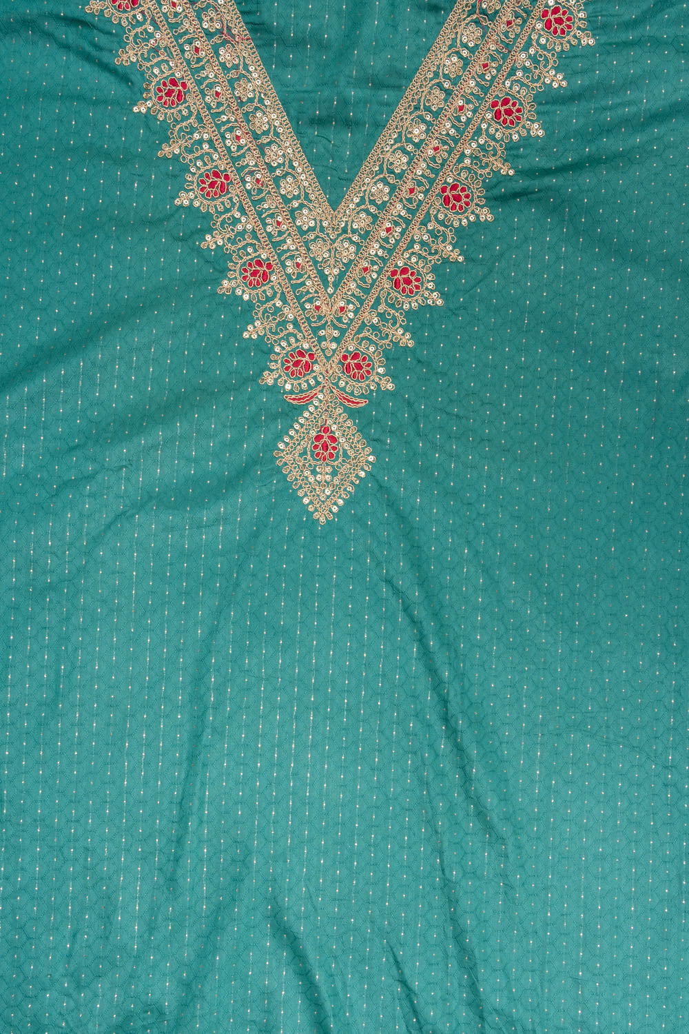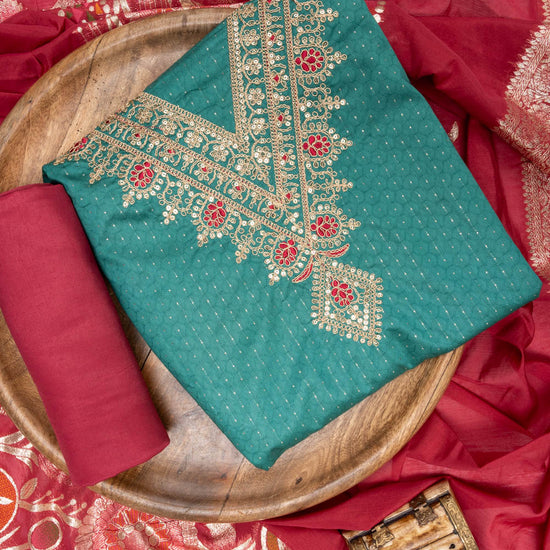Panna Peacock Sequence & Zari Threadwork Cotton Unstitched Salwar Suit With Cotton Dupatta