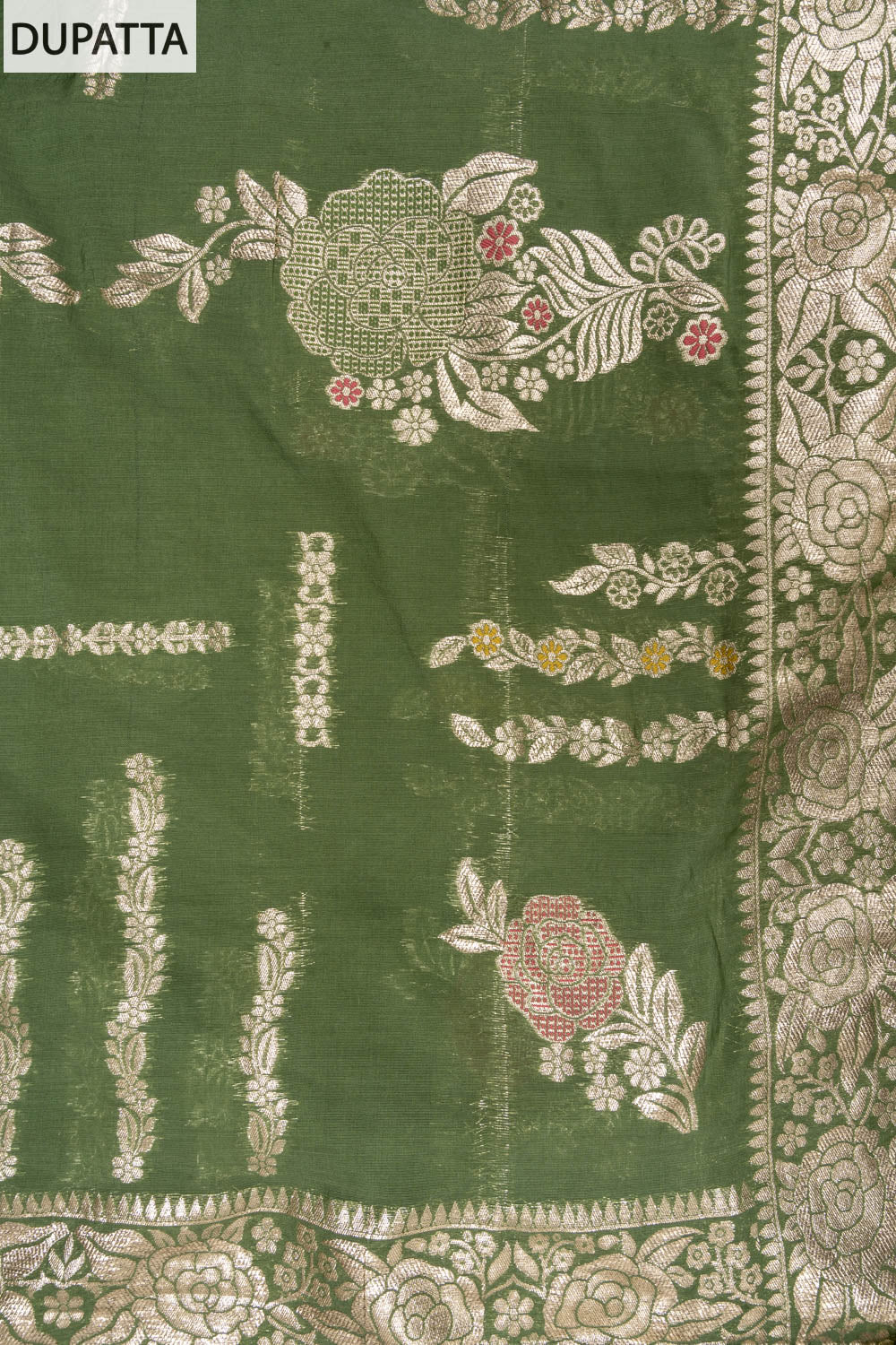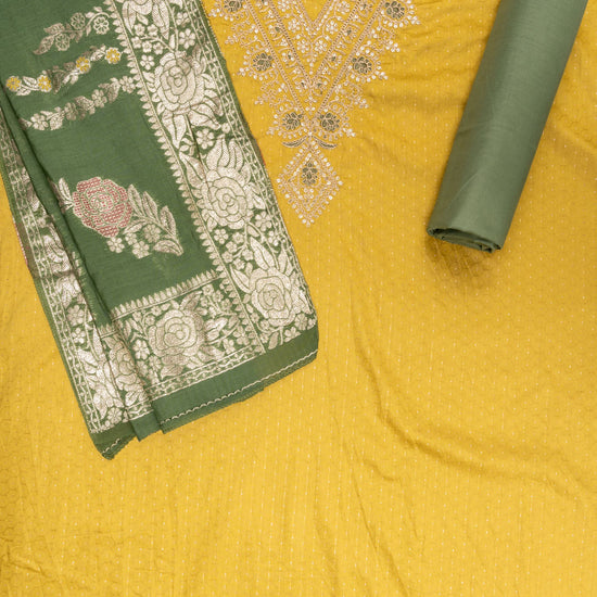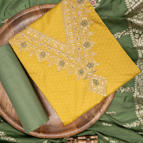 Pista Sequence & Zari Threadwork Cotton Unstitched Salwar Suit With Cotton Dupatta