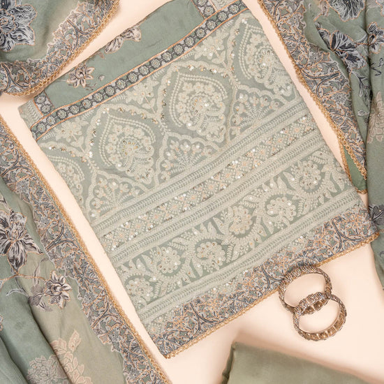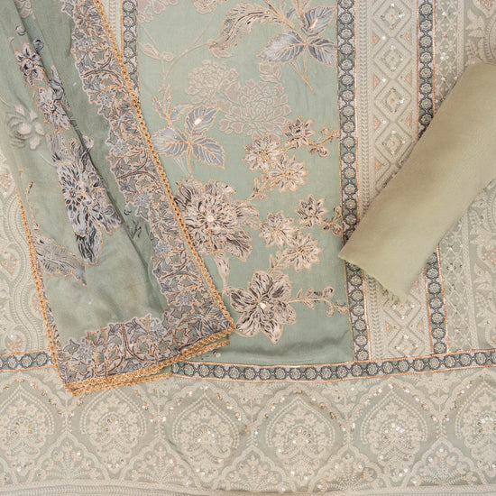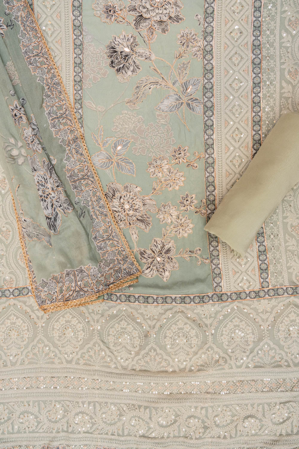 Panna Mint Green Sequence & Threadwork Georgette Unstitched Salwar Suit With Georgette Dupatta
