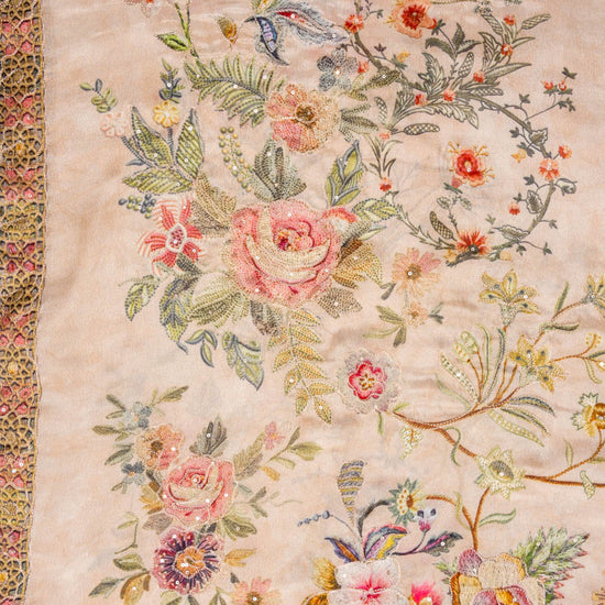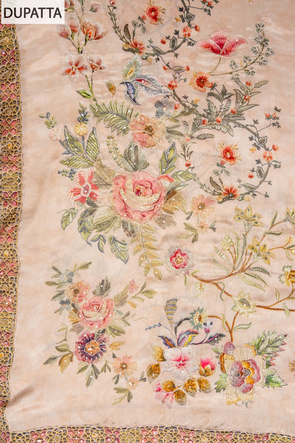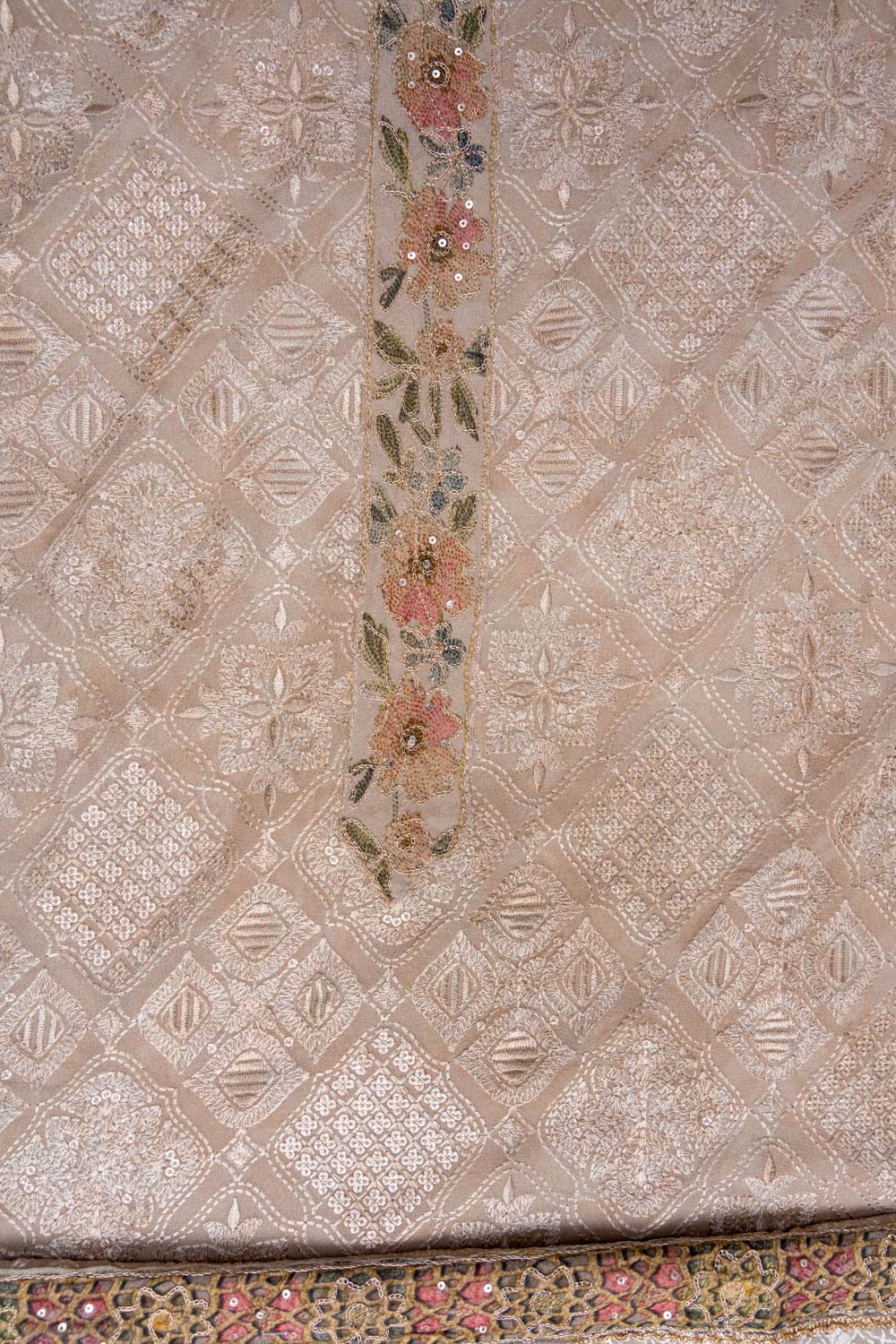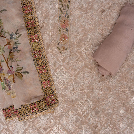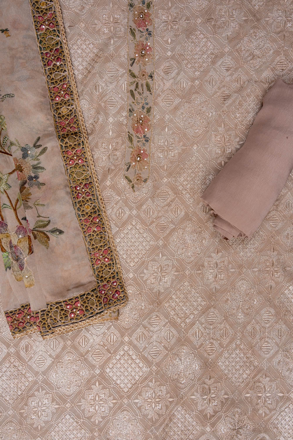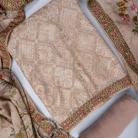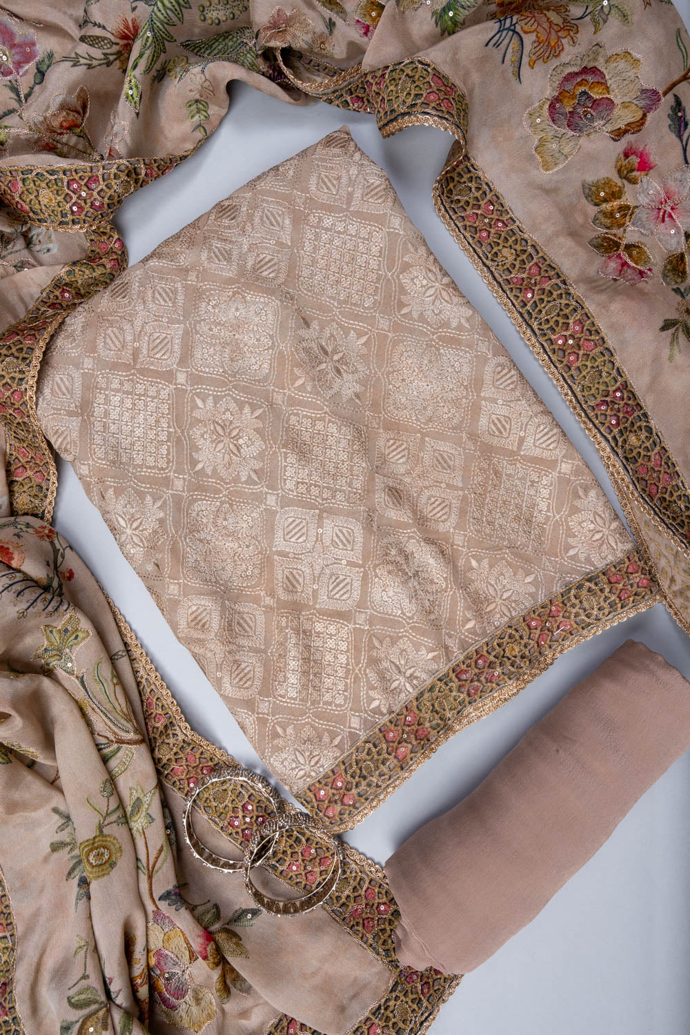 Panna Chikoo Sequence, Zarkan & Threadwork Georgette Unstitched Salwar Suit With Crepe dupatta