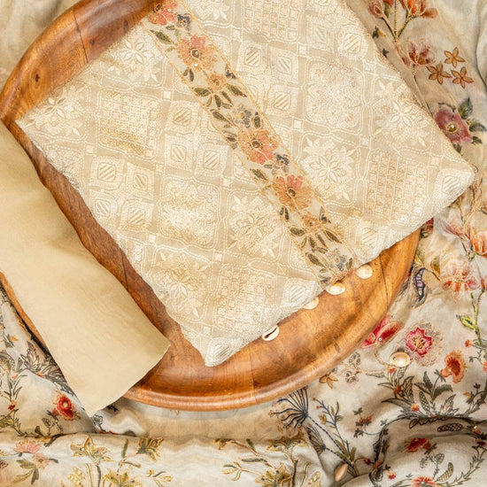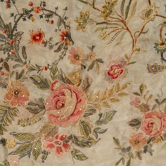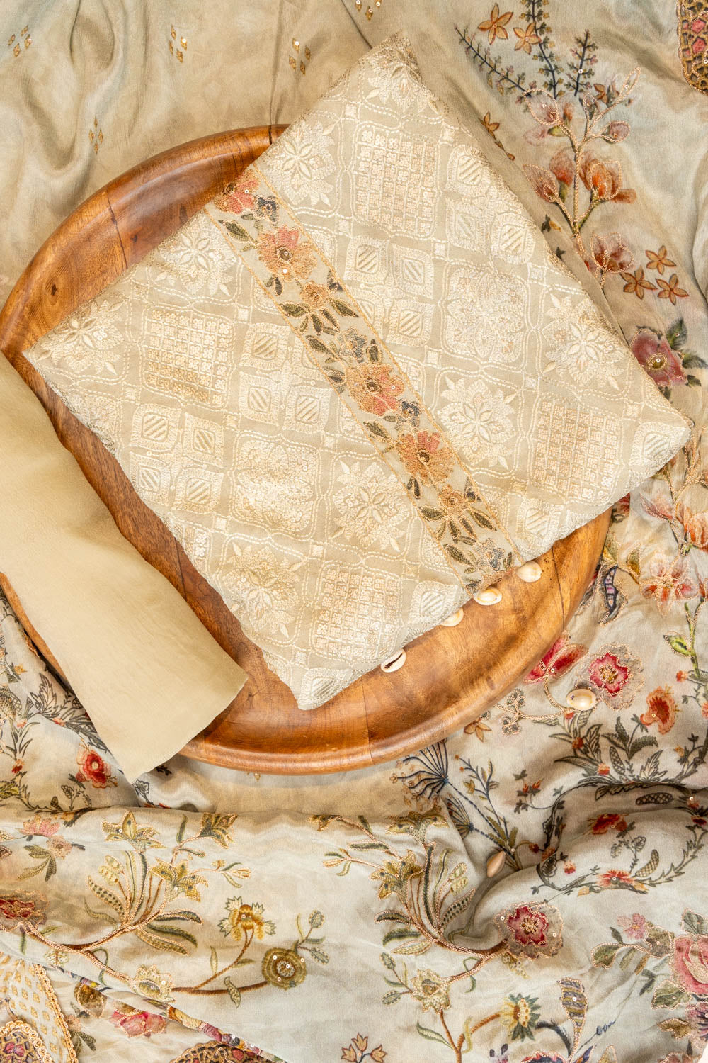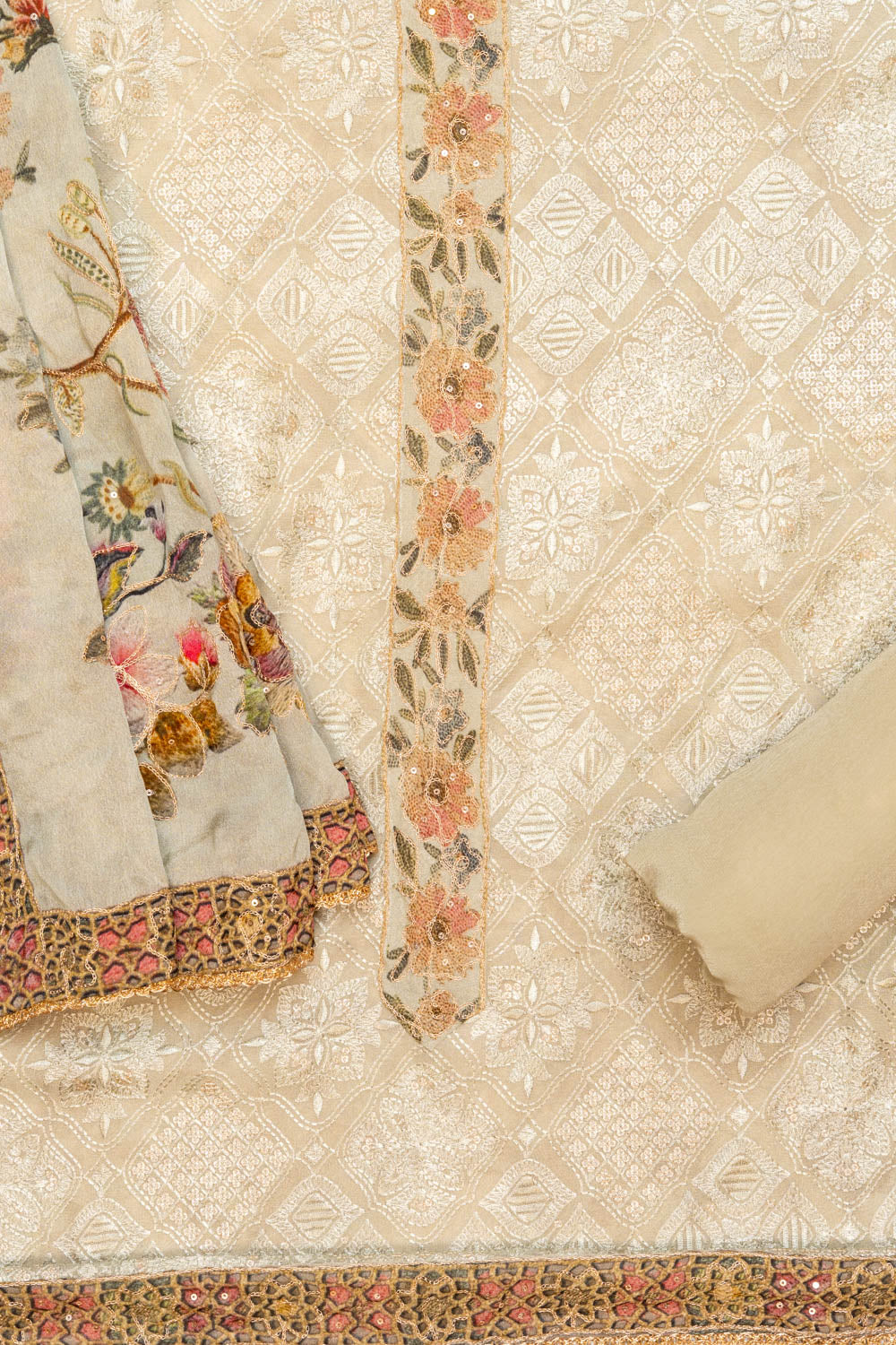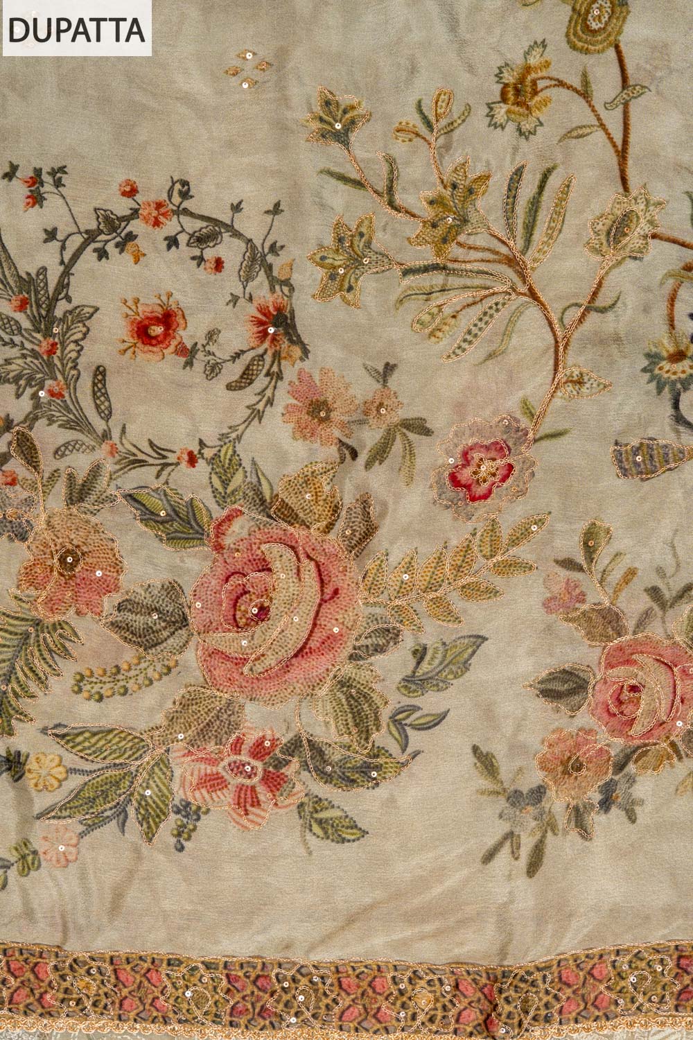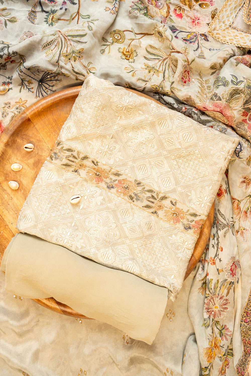 Panna Olive Sequence, Zarkan & Threadwork Georgette Unstitched Salwar Suit With Crepe dupatta