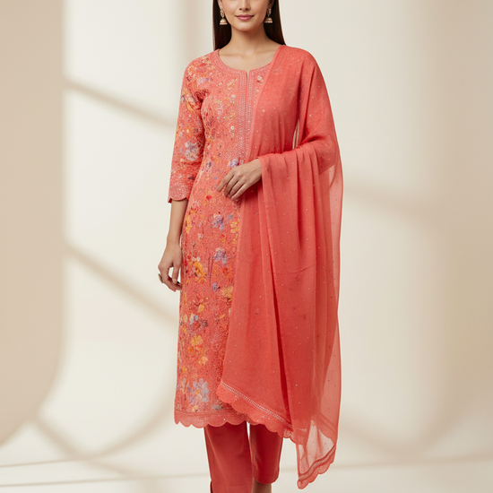 Step into sheer elegance with this exquisite Organza Unstitched Suit Set, a perfect blend of luxury and craftsmanship. Crafted from premium organza fabric, it exudes a soft sheen and graceful flow,