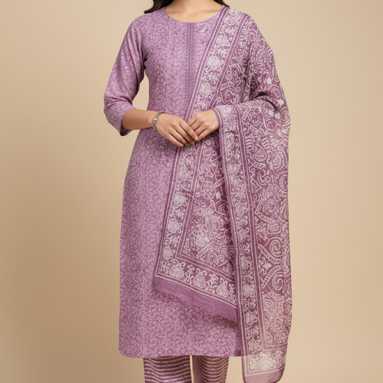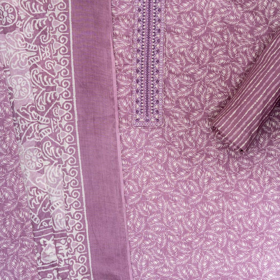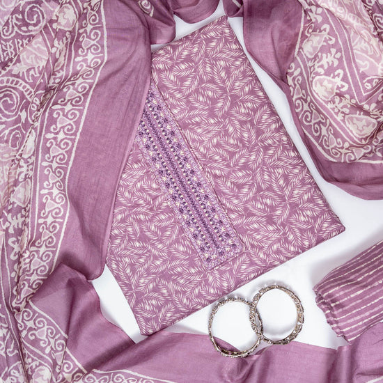 Panna Mauve Cotton Unstitched Salwar Suit With Cotton Dupatta