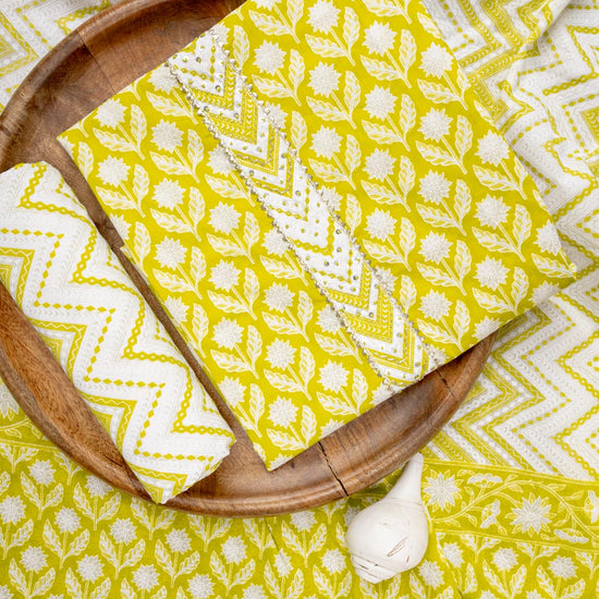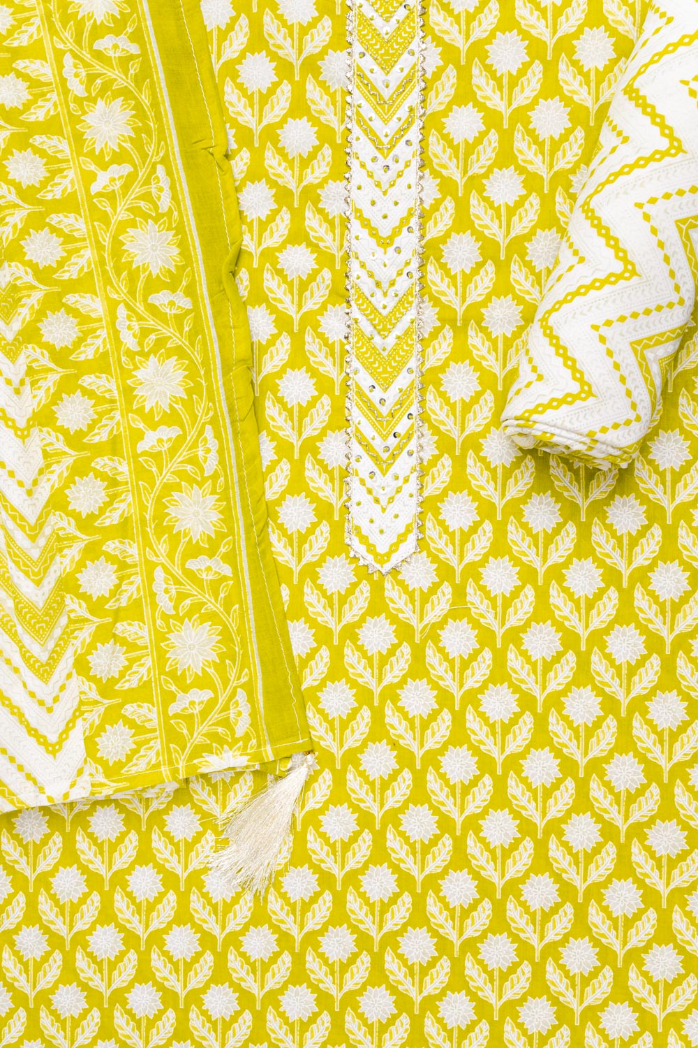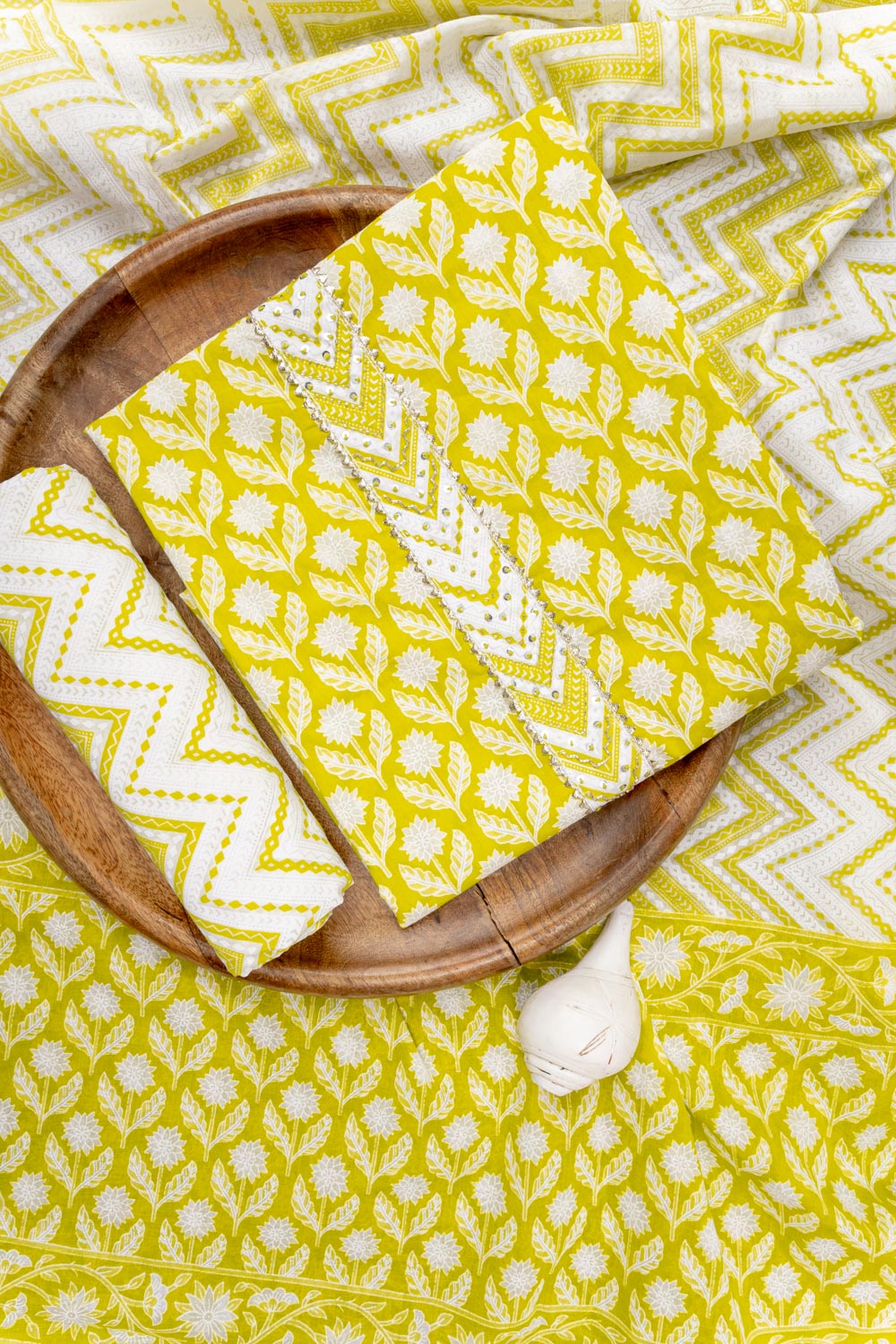 Panna Parrot Floral Printed Cotton Unstitched Suit With Dupatta