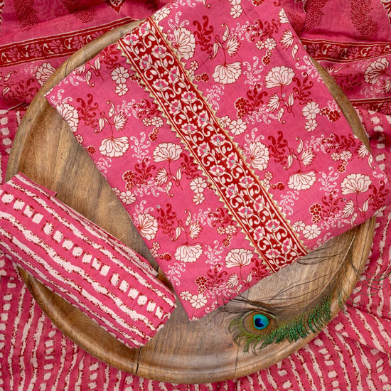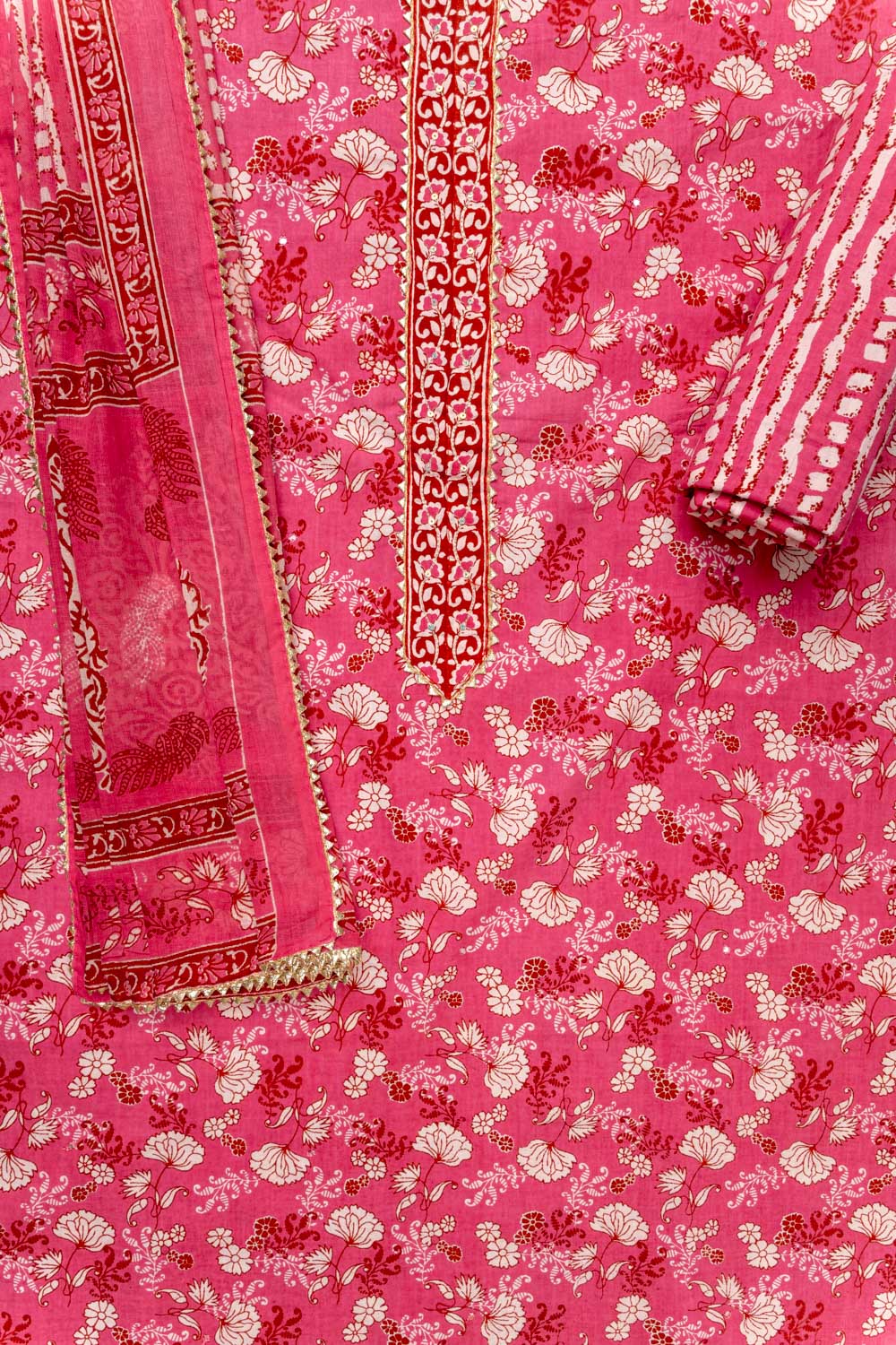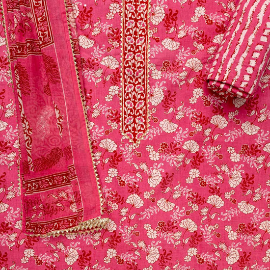 Panna Gajari Floral Printed Cotton Unstitched Suit With Dupatta