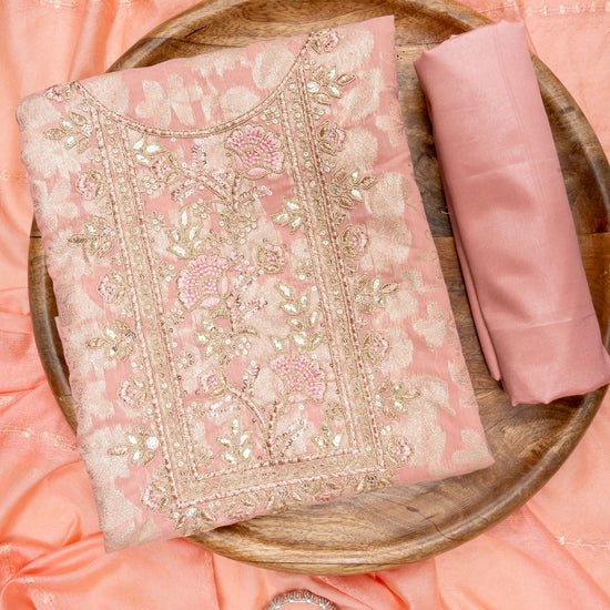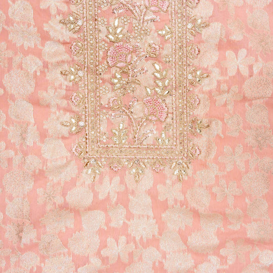 Panna Peach Sequence, Zari Threadwork, Gotta Patti & Banarasi Woven Zari Cotton Unstitched Salwar Suit With Cotton Dupatta