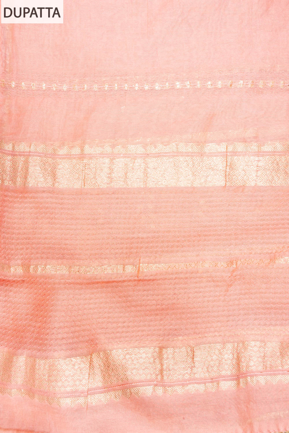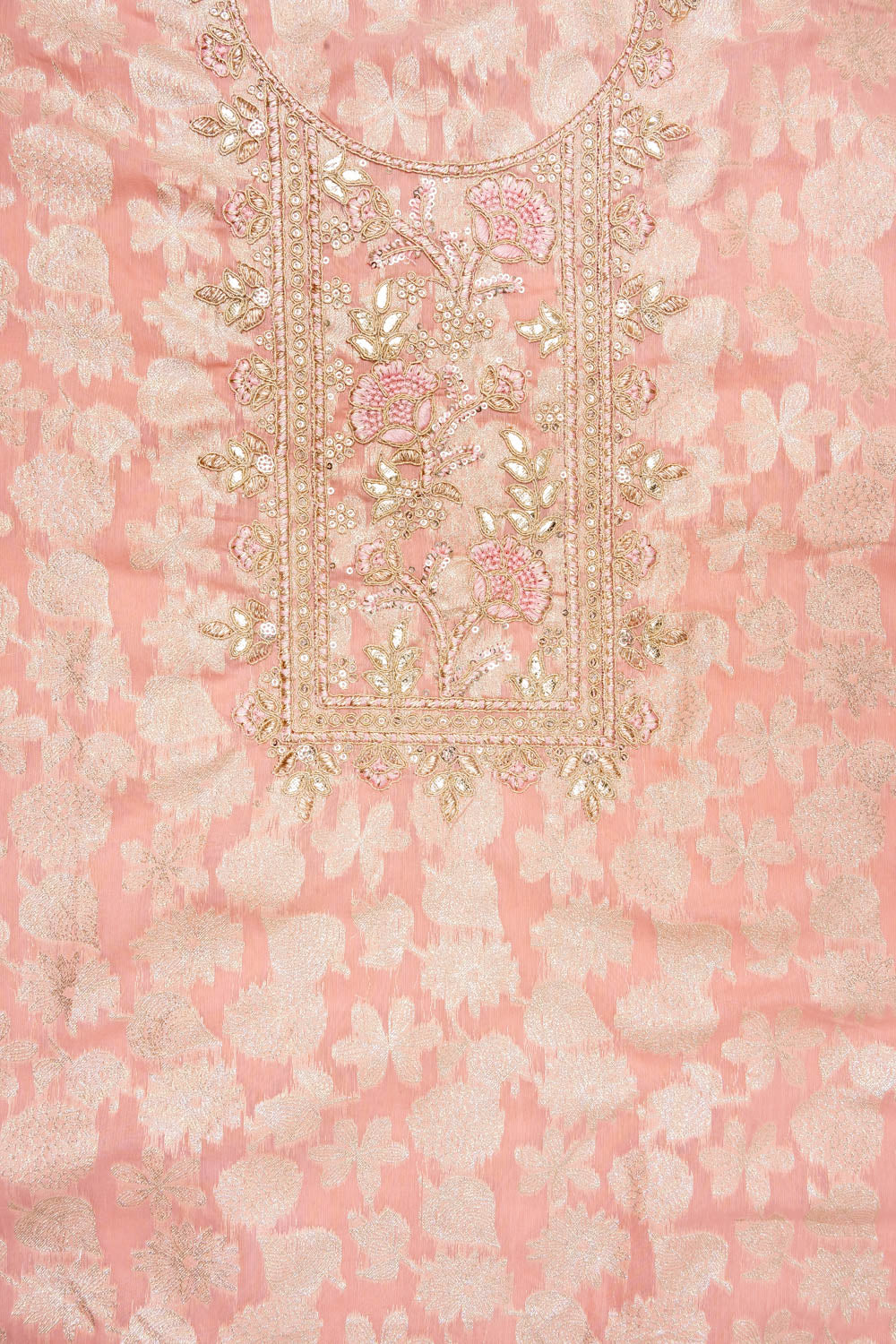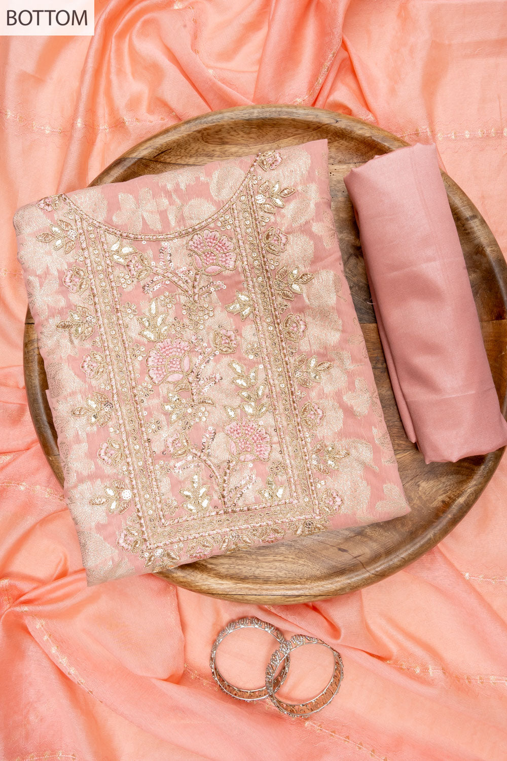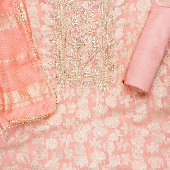 Peach Sequence, Zari Threadwork, Gotta Patti & Banarasi Woven Zari Cotton Unstitched Salwar Suit With Cotton Dupatta