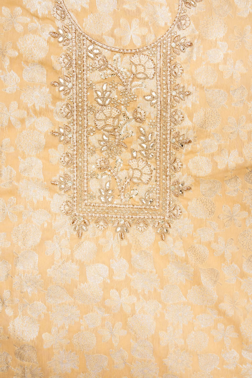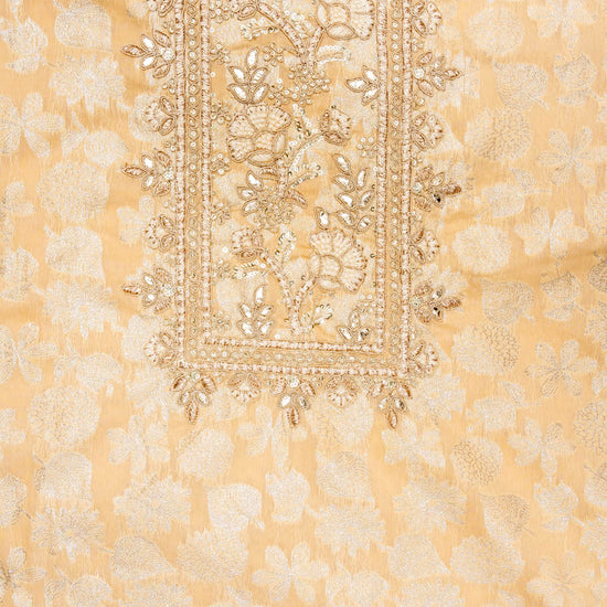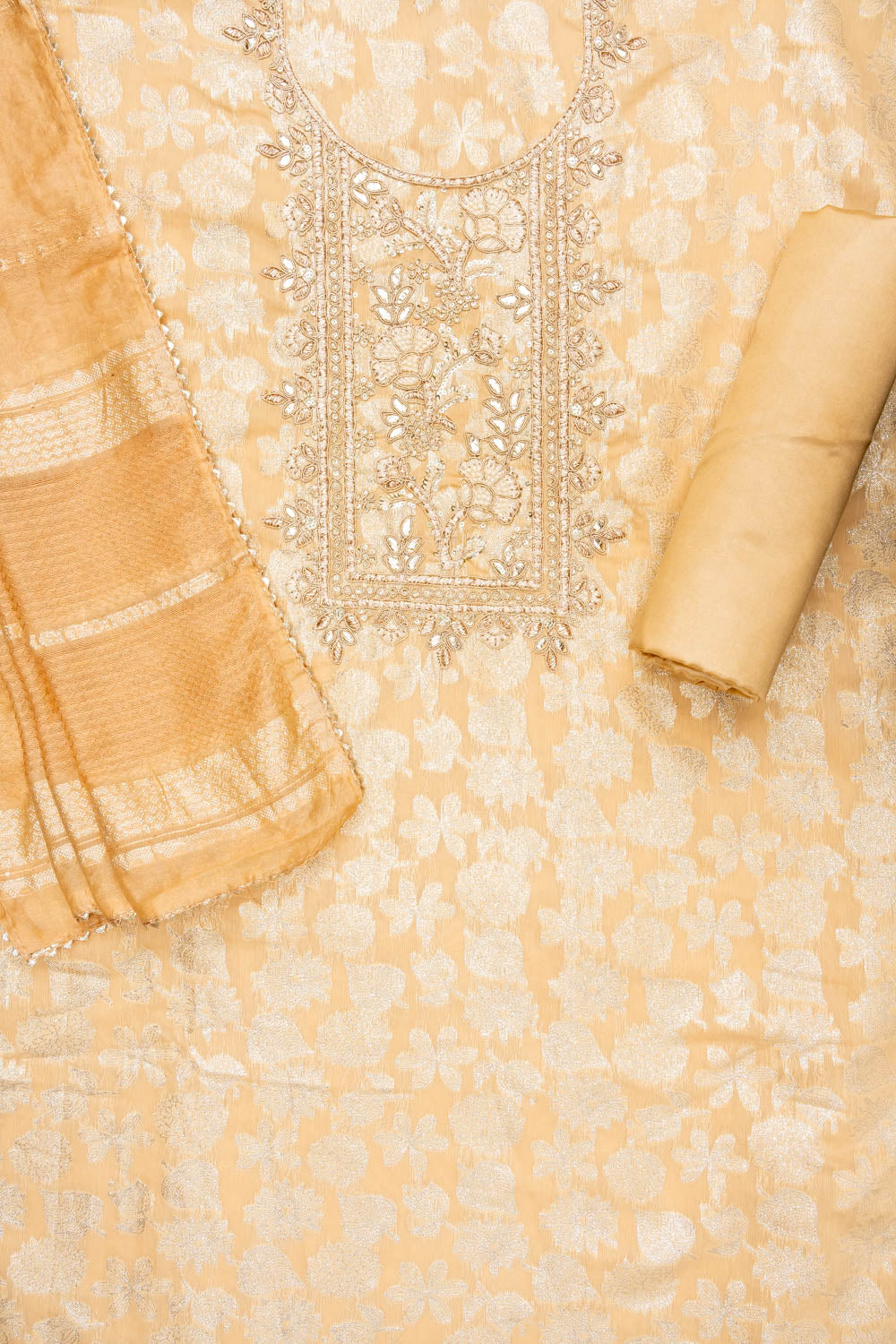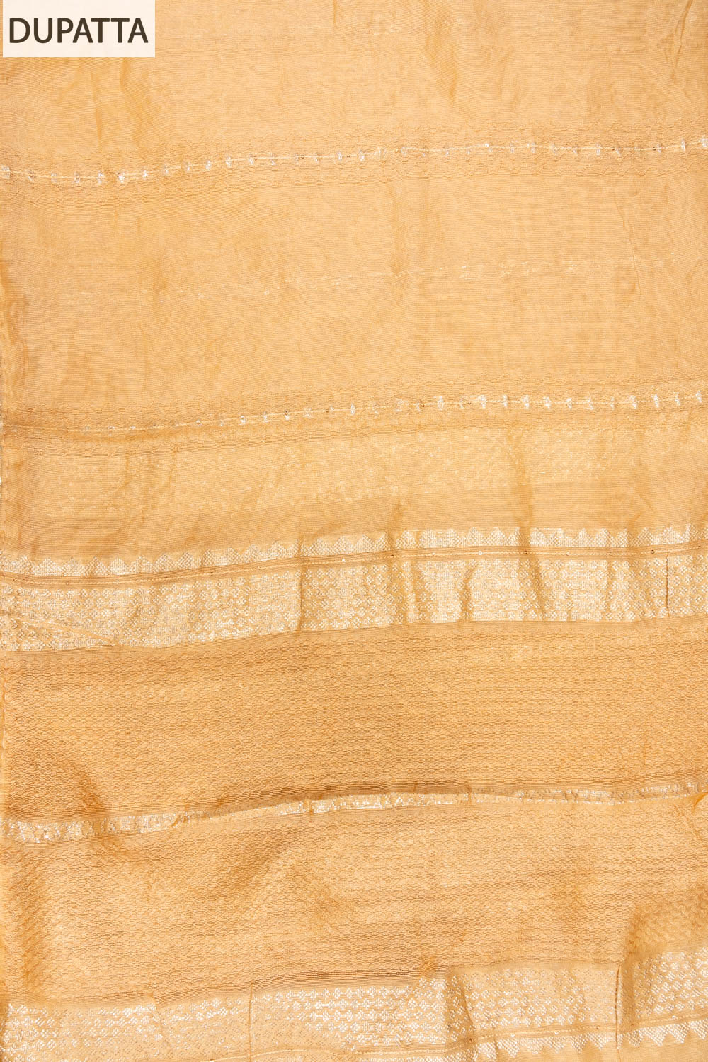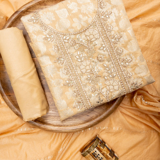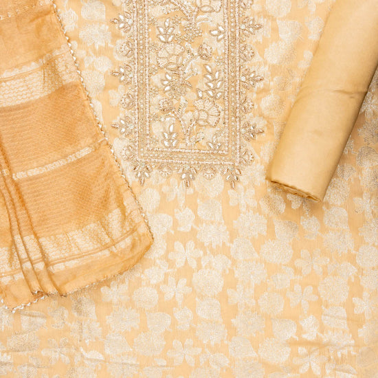 Panna Tussar Sequence, Zari Threadwork, Gotta Patti & Banarasi Woven Zari Cotton Unstitched Salwar Suit With Cotton Dupatta