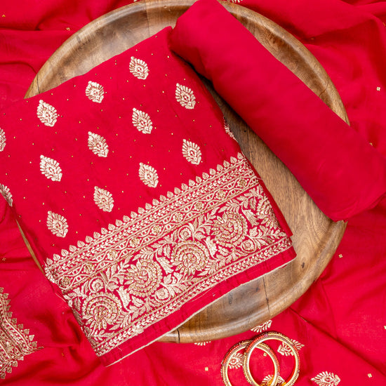 Panna Rani Swarovski & Zari Threadwork Dolna Unstitched Salwar Suit With Dolna Dupatta