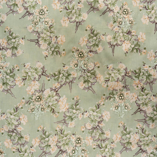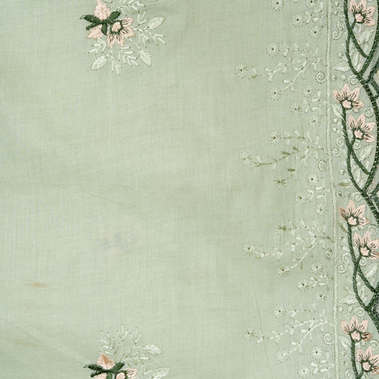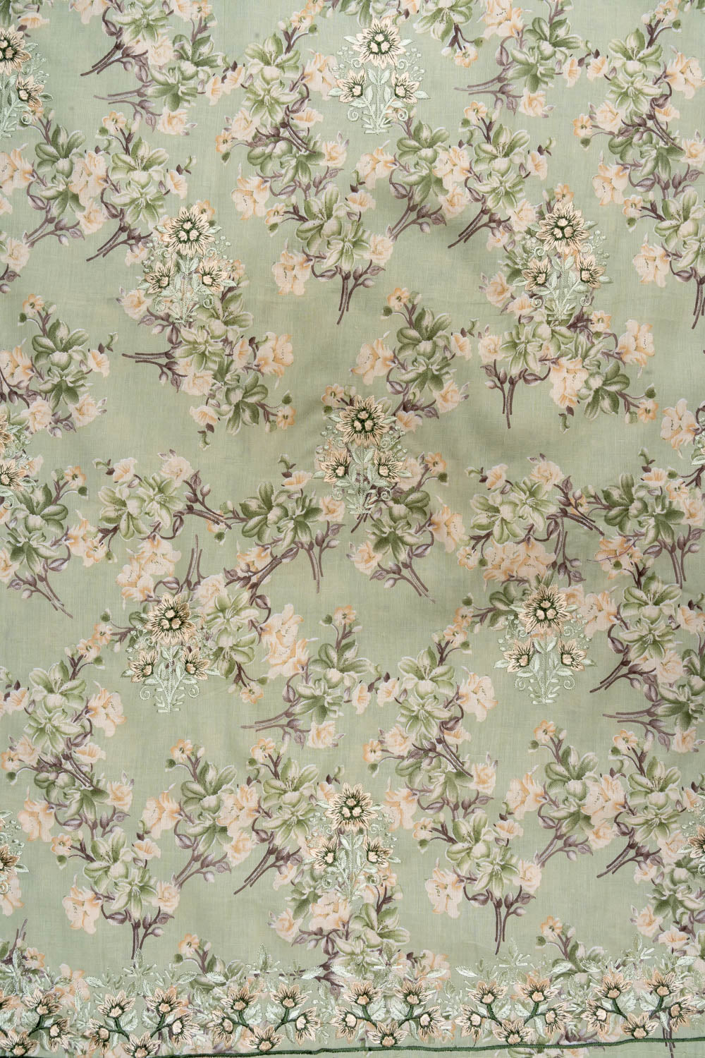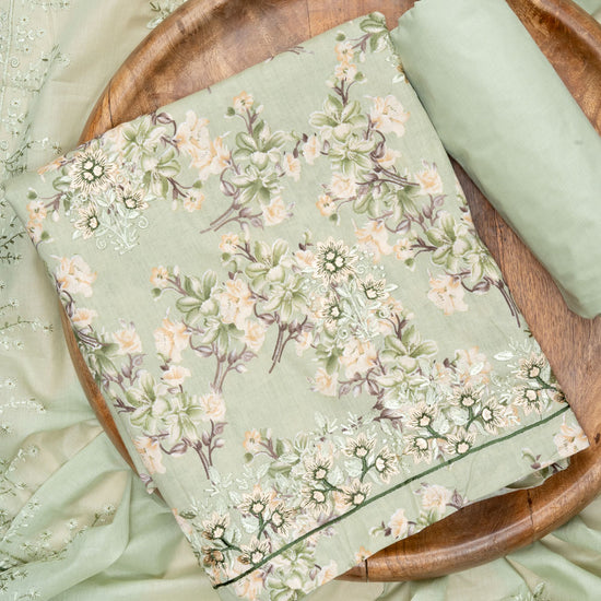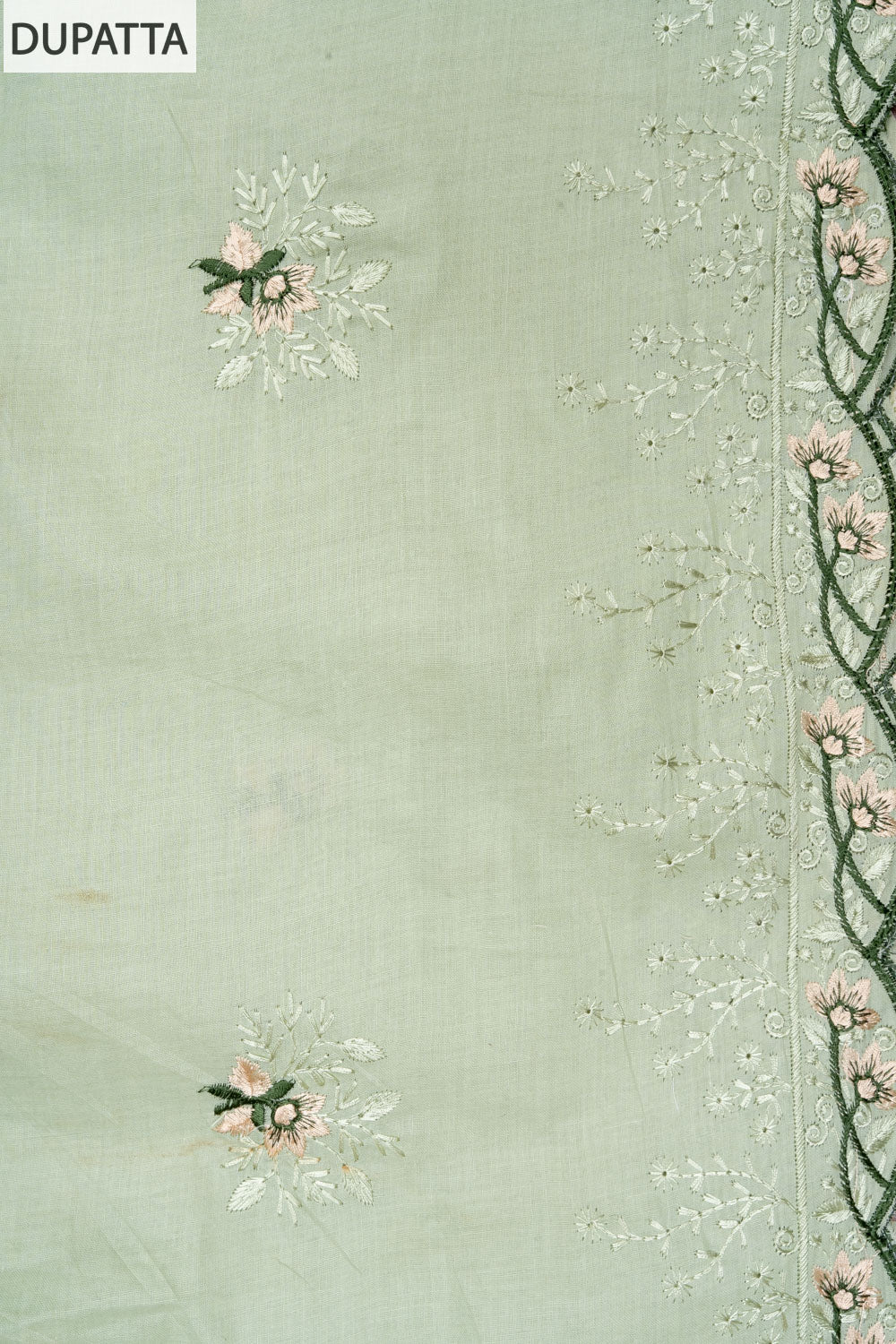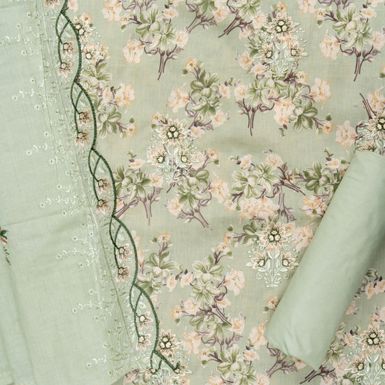 Panna Pista Threadwork & Floral Printed Cotton Unstitched Salwar Suit With Cotton Dupatta