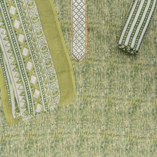 Panna Pista Sequence, Threadwork & Digital Printed Cotton Unstitched Salwar Suit With Cotton Dupatta