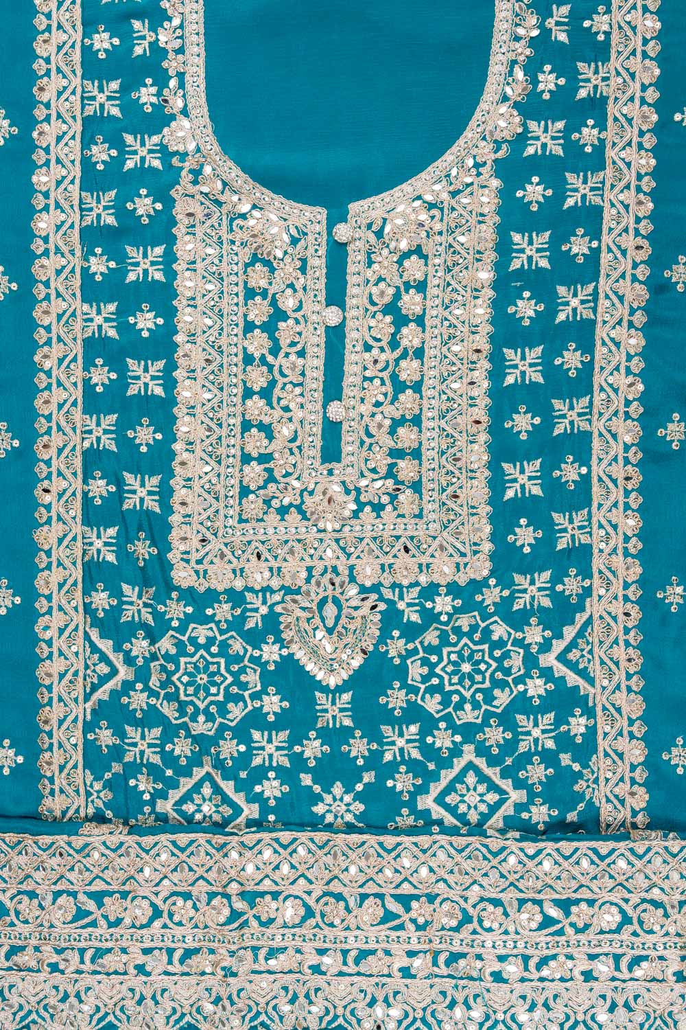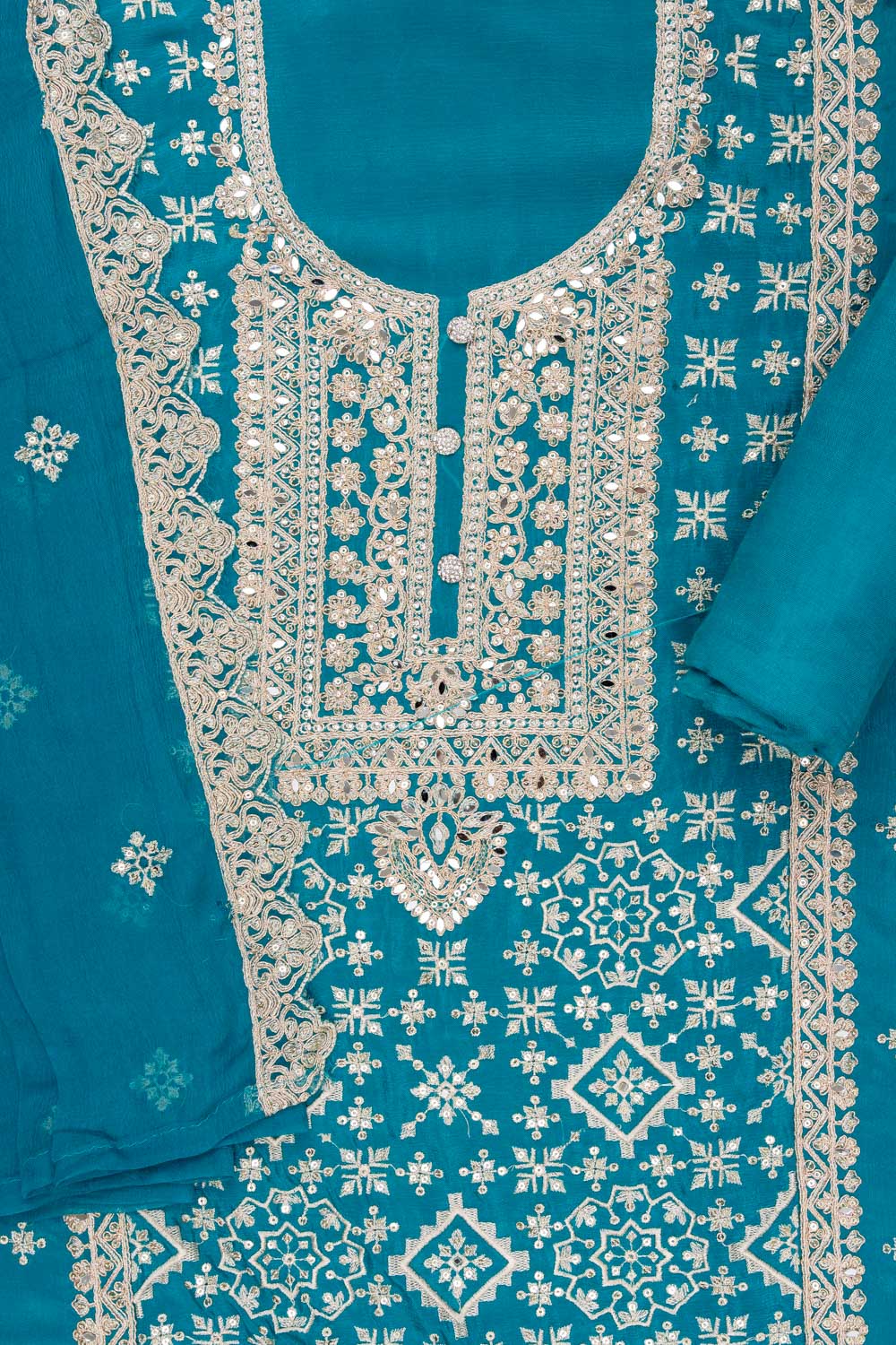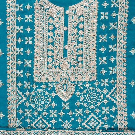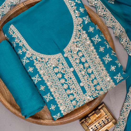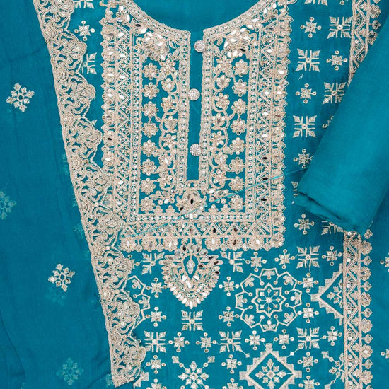 Panna Rama Organza Unstitched Suit With Chiffon Dupatta