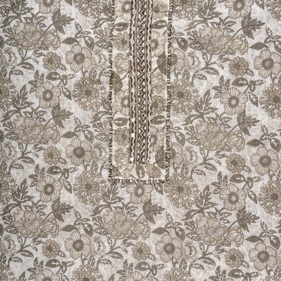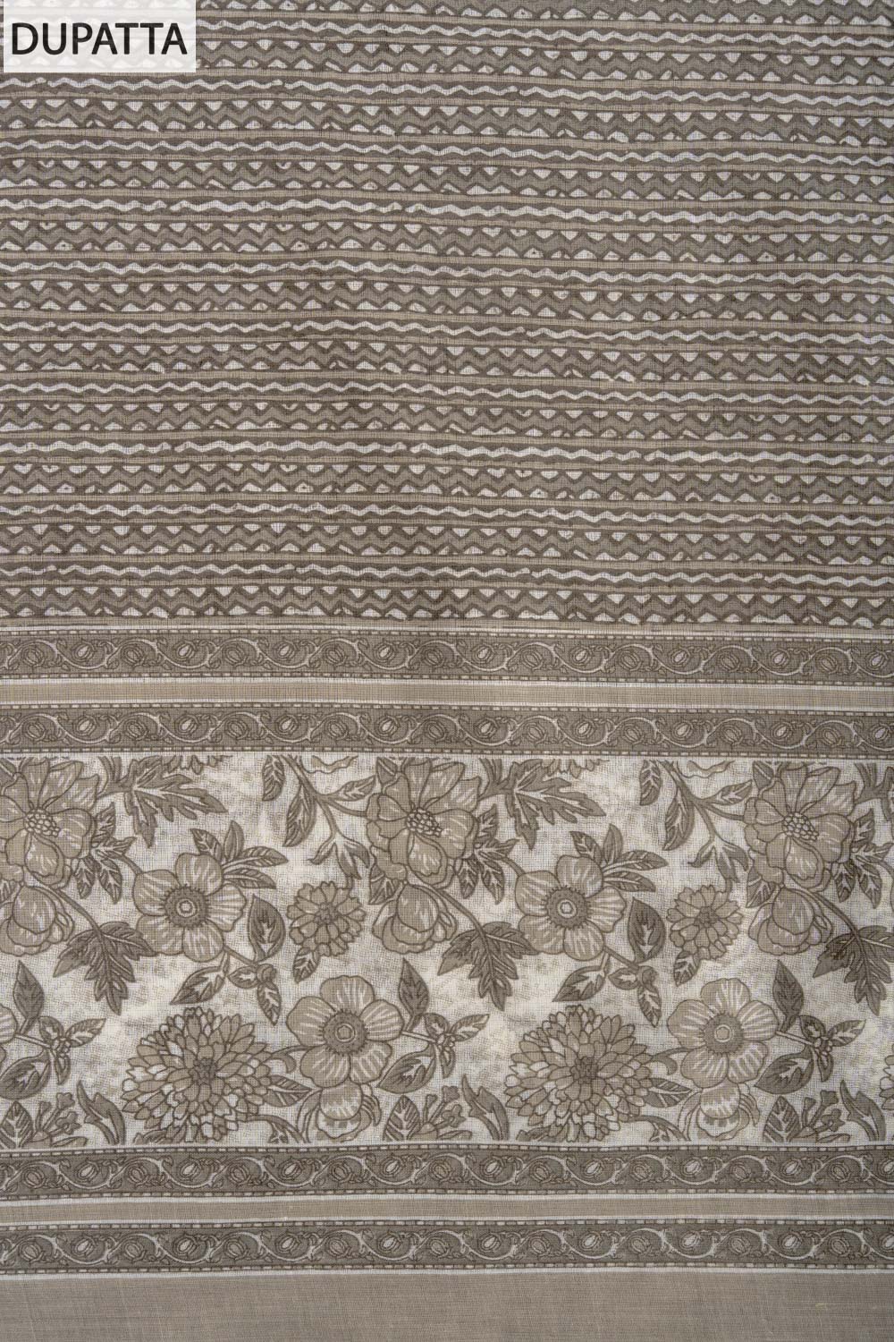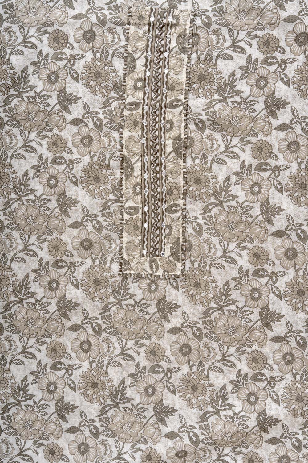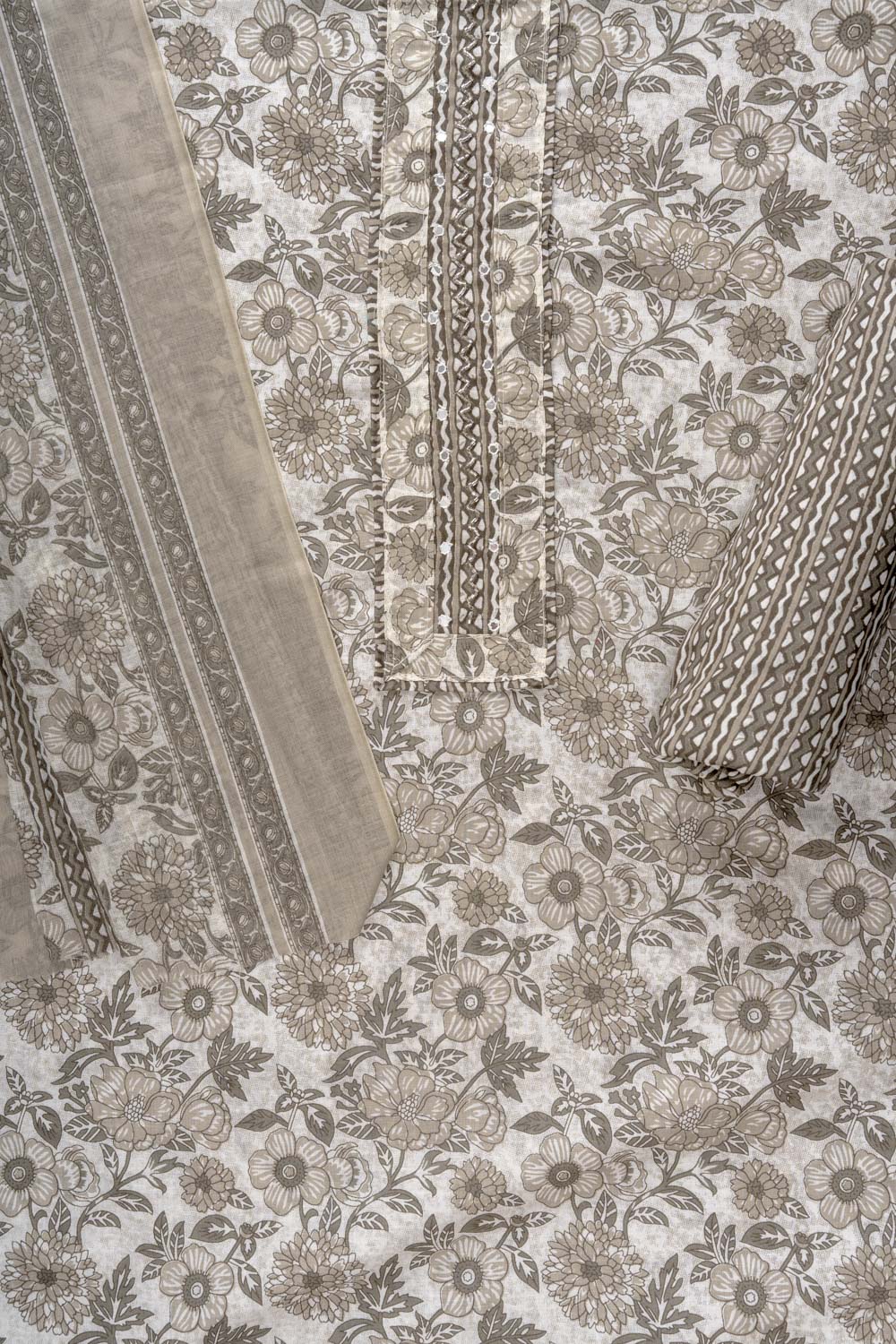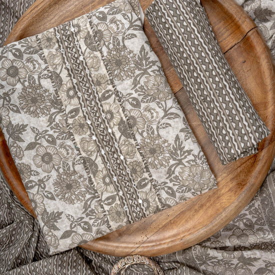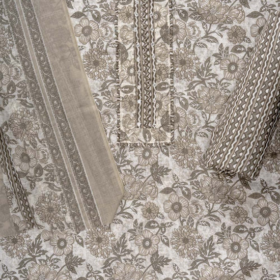 Panna Grey Sequence, Threadwork & Floral Printed Cotton Unstitched Salwar Suit With Cotton Dupatta