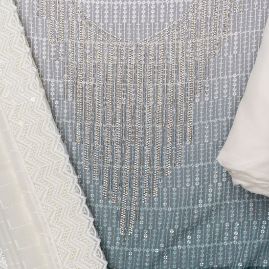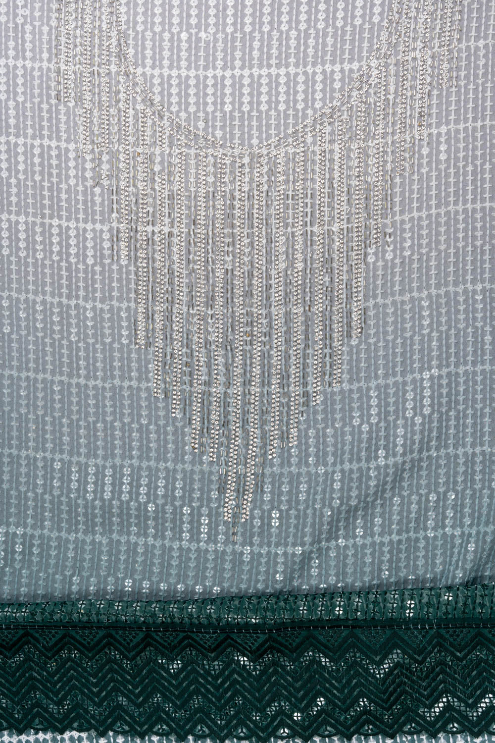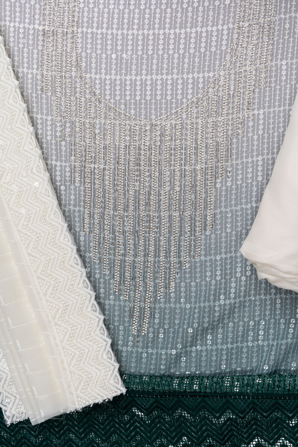 Panna Mint Green Mirror, Sequence, Threadwork & Zarkan Crepe Unstitched Salwar Suit With Chiffon Dupatta