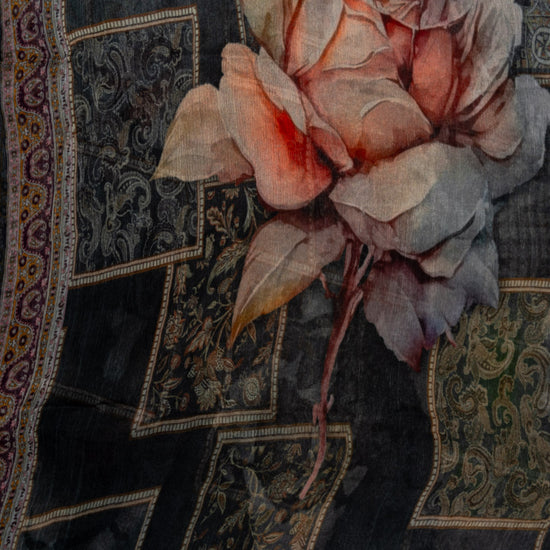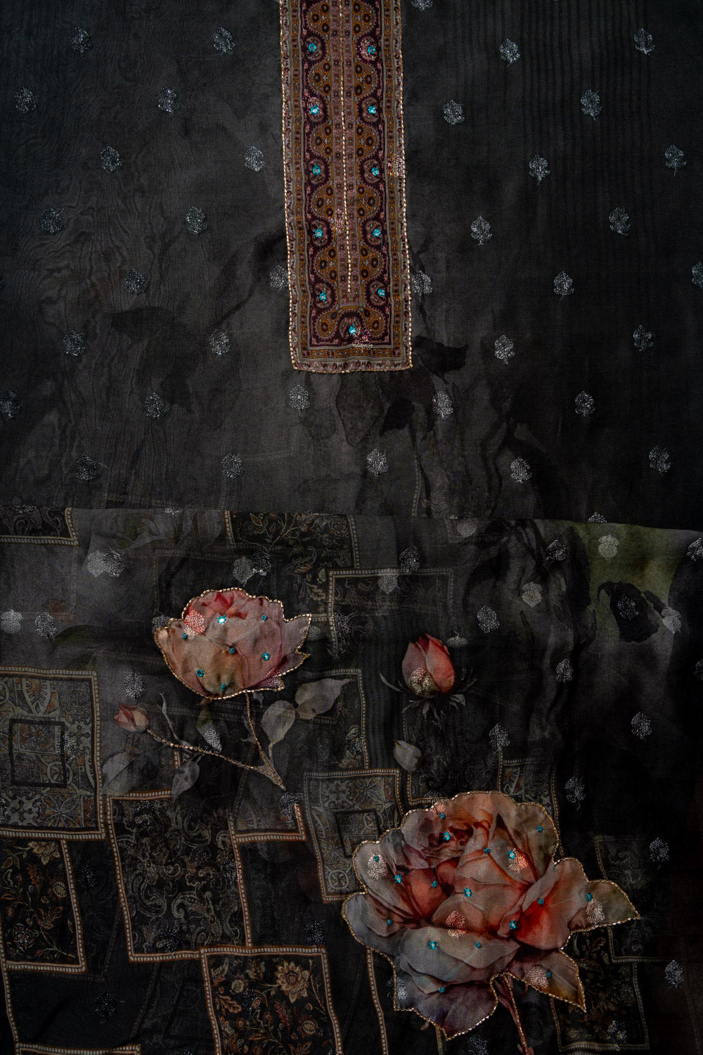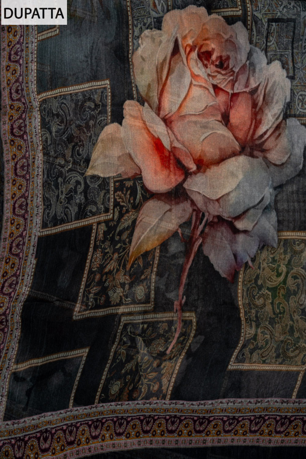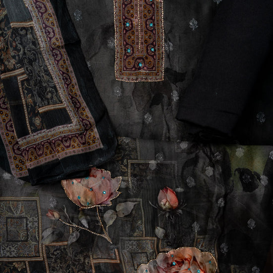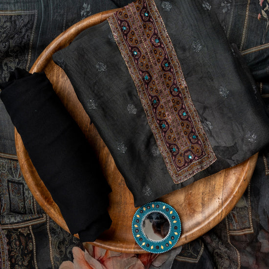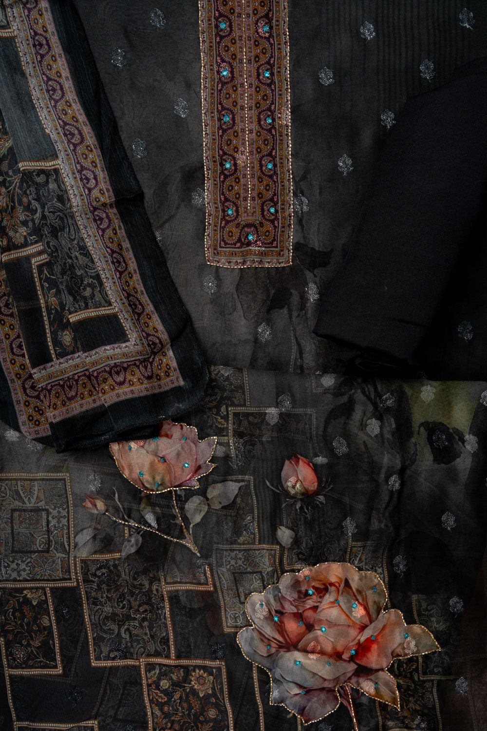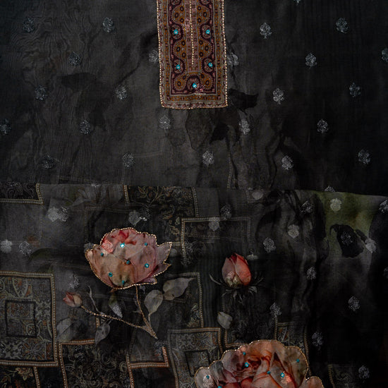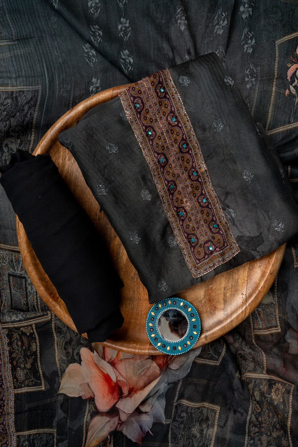 Panna Grey Cutdana, Mirror Sheet, Threadwork & Digital Printed Organza Unstitched Salwar Suit With Chiffon Dupatta
